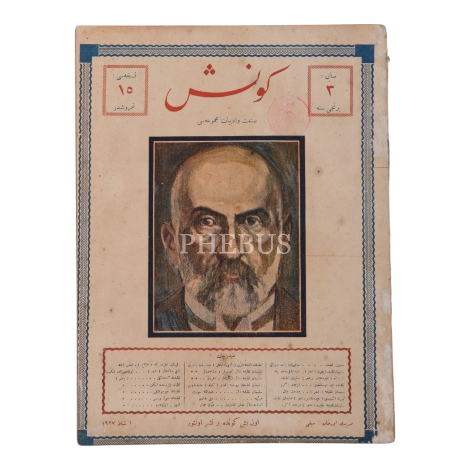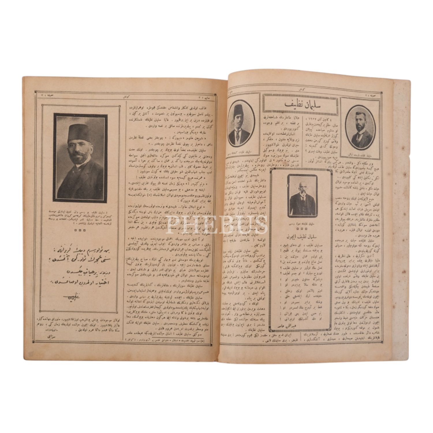 GÜNEŞ dergisinin Süleyman Nazif´in vefatı dolayısıyla sadece Süleyman Nazif hakkında yazılar içeren ve kapağında Süleyman Nazif´in resmine yer verdiği 1 Şubat 1927 tarihli 3. sayısı, 22x29 cm..