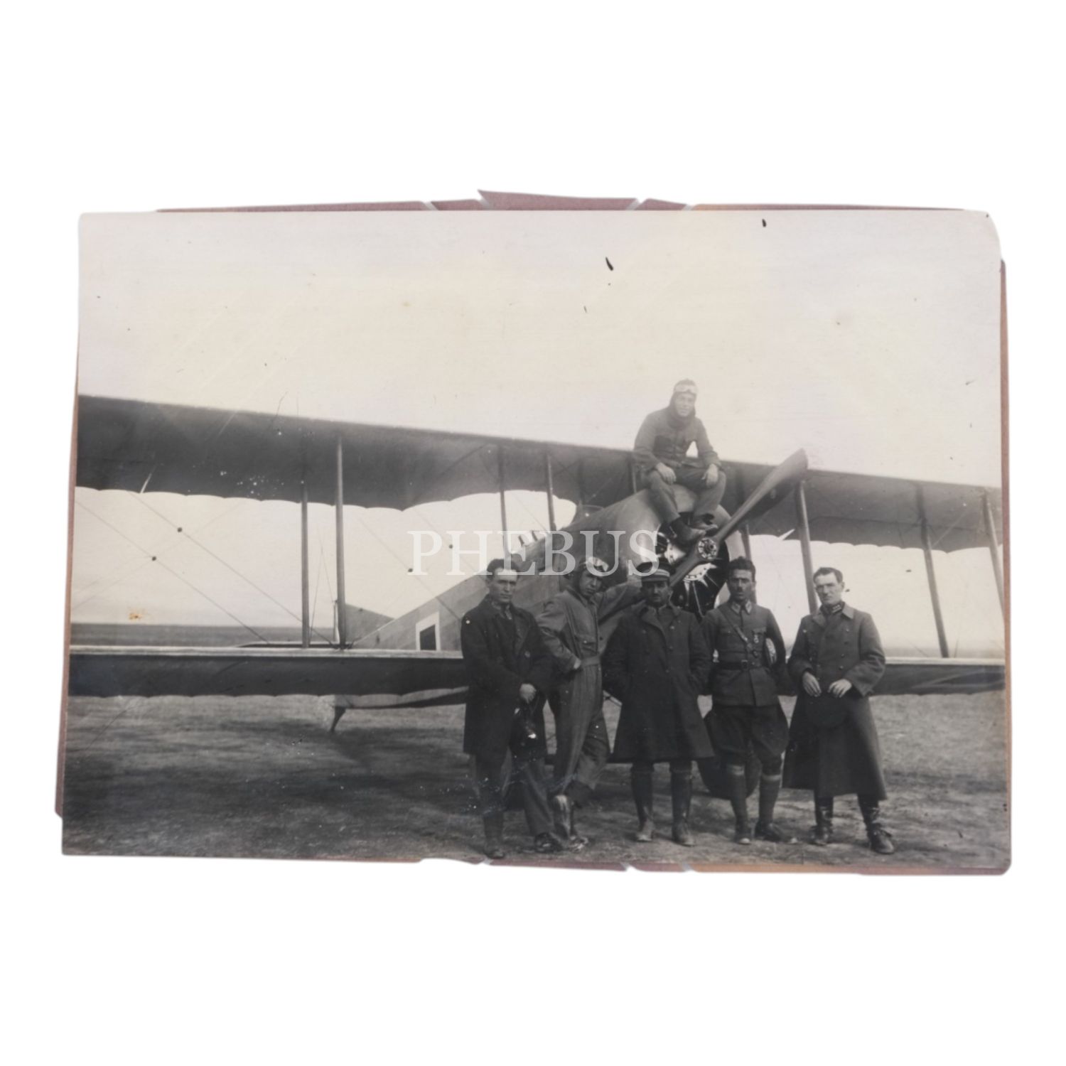 Türk tayyarecilerinin tayyareleri önünde çektirdikleri hatıra fotoğrafı, 16x12 cm...