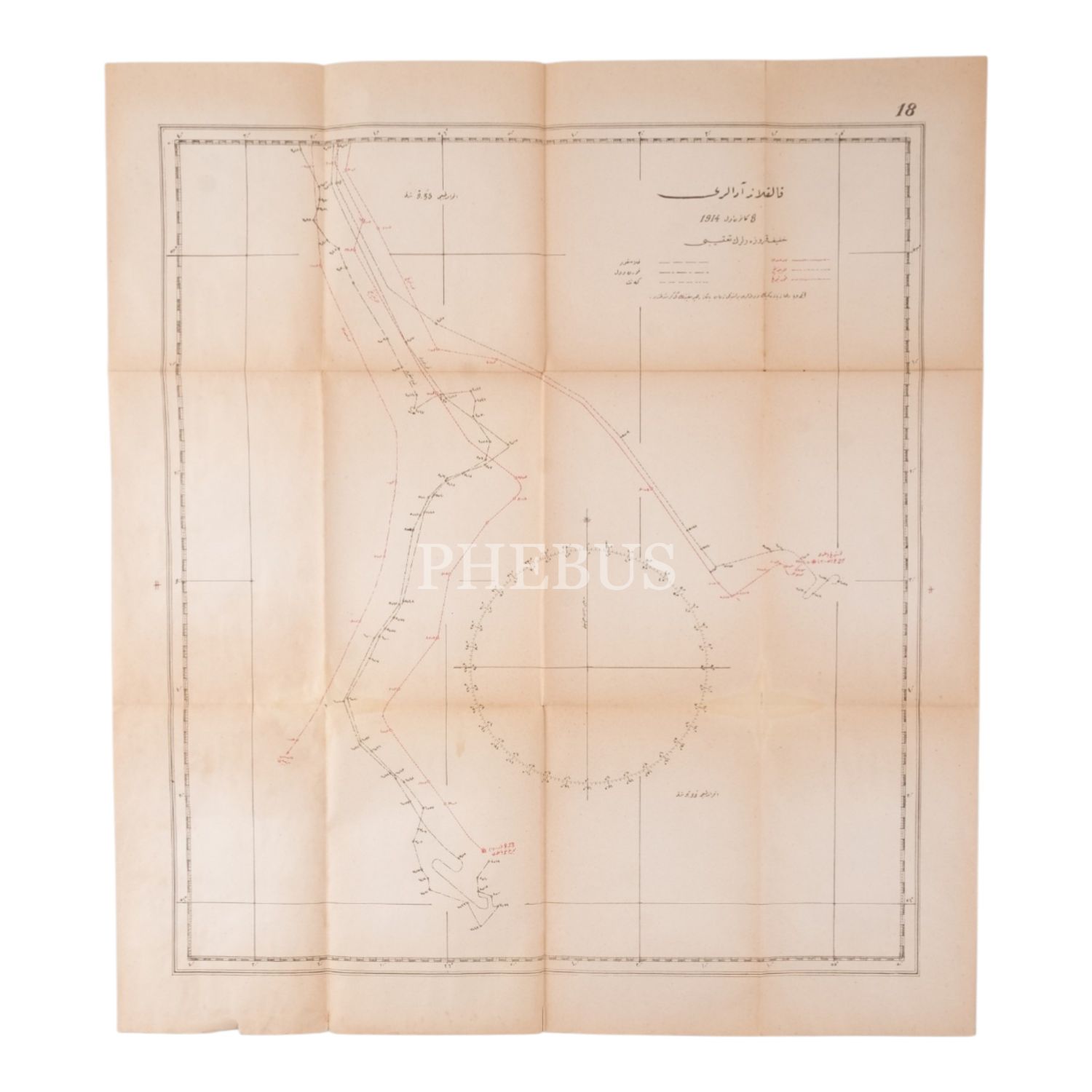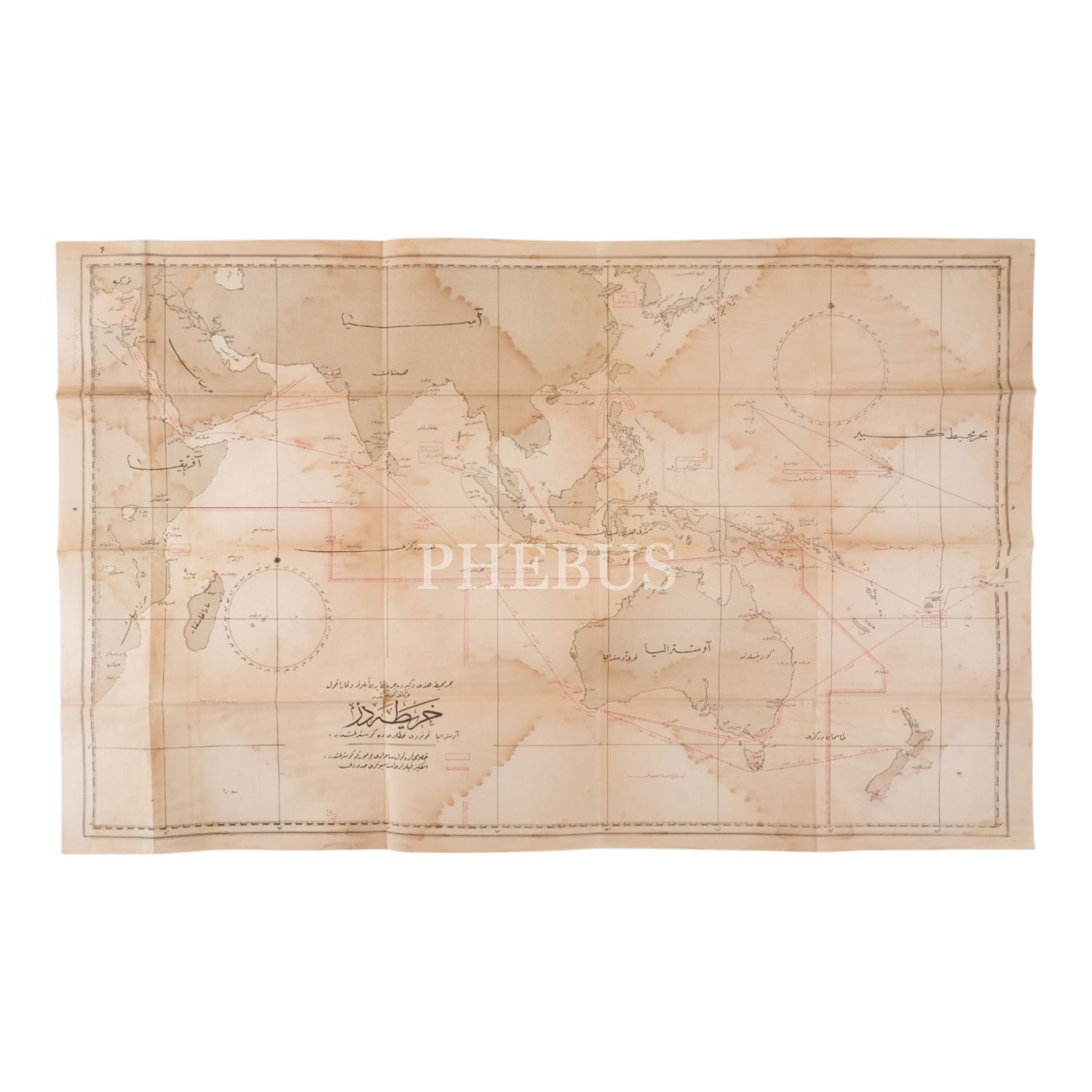 Pasifik Okyanusu ve Hint Okyanusu´nda yer alan askeri kuvvetleri, karakolları ve abluka noktalarının gösterildiği, "Bahr-i Muhit-i Hindi ve Kebir´de Cereyan Eden Abluka ve Karakol Hareketini Gösterir Haritadır" başlıklı Osmanlıca 17 paftadan oluşan harita, bir paftanın ölçüsü 82x57 cm..