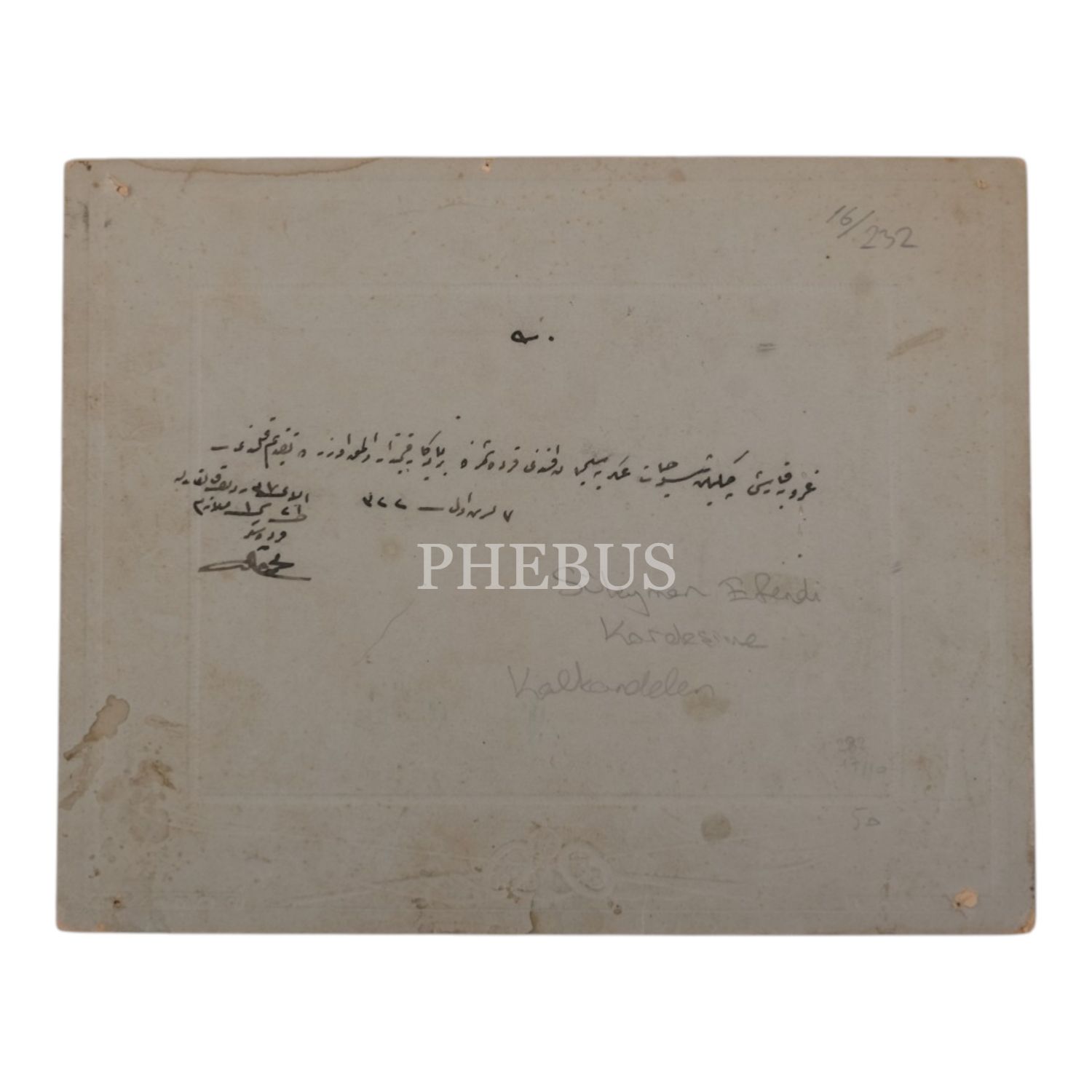 Fotoğrafın arka yüzünde, 1905 senesinde kaleme alnmış "Guruba karşı çekilen şu hayat-ı askeriye Süleyman Efendi kardeşimize bir yadigar-ı kıymetdar olmak üzere takdim kılındı." ithafı yer almaktadır.