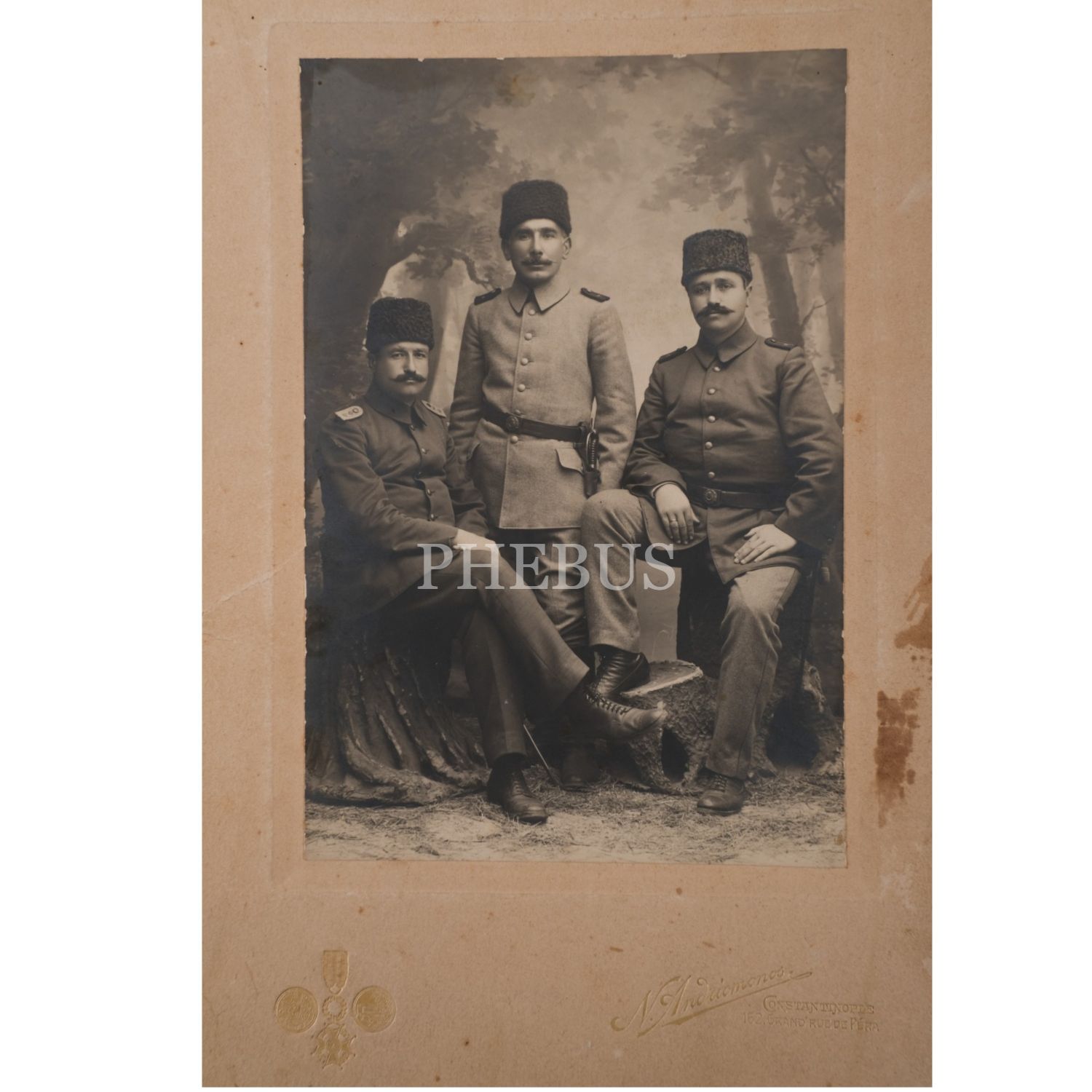 Bir grup Osmanlı subayının hatıra fotoğrafı, "N. Andriomenos - Constantinople", 25x20 cm...
