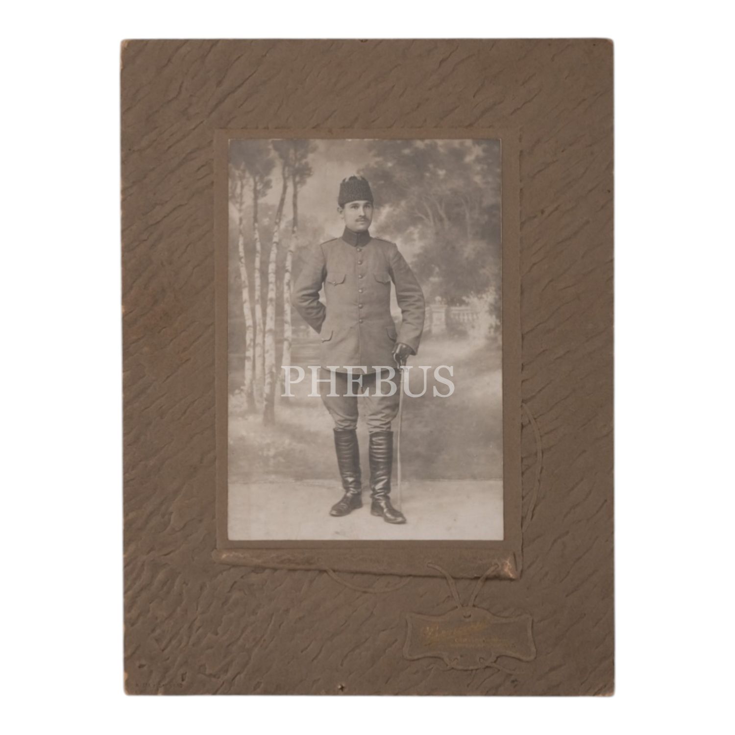 Mustafa Kemal Atatürk´ün başyaveri İbrahim Rüsuhi (Savaşçı)´nin Harp Mektebi´nden teğmen rütbesiyle mezun olduğu dönemlerde çektirdiği ithaflı ve imzalı fotoğrafı, "Parnasse - Constantinople" 17x23 cm...
