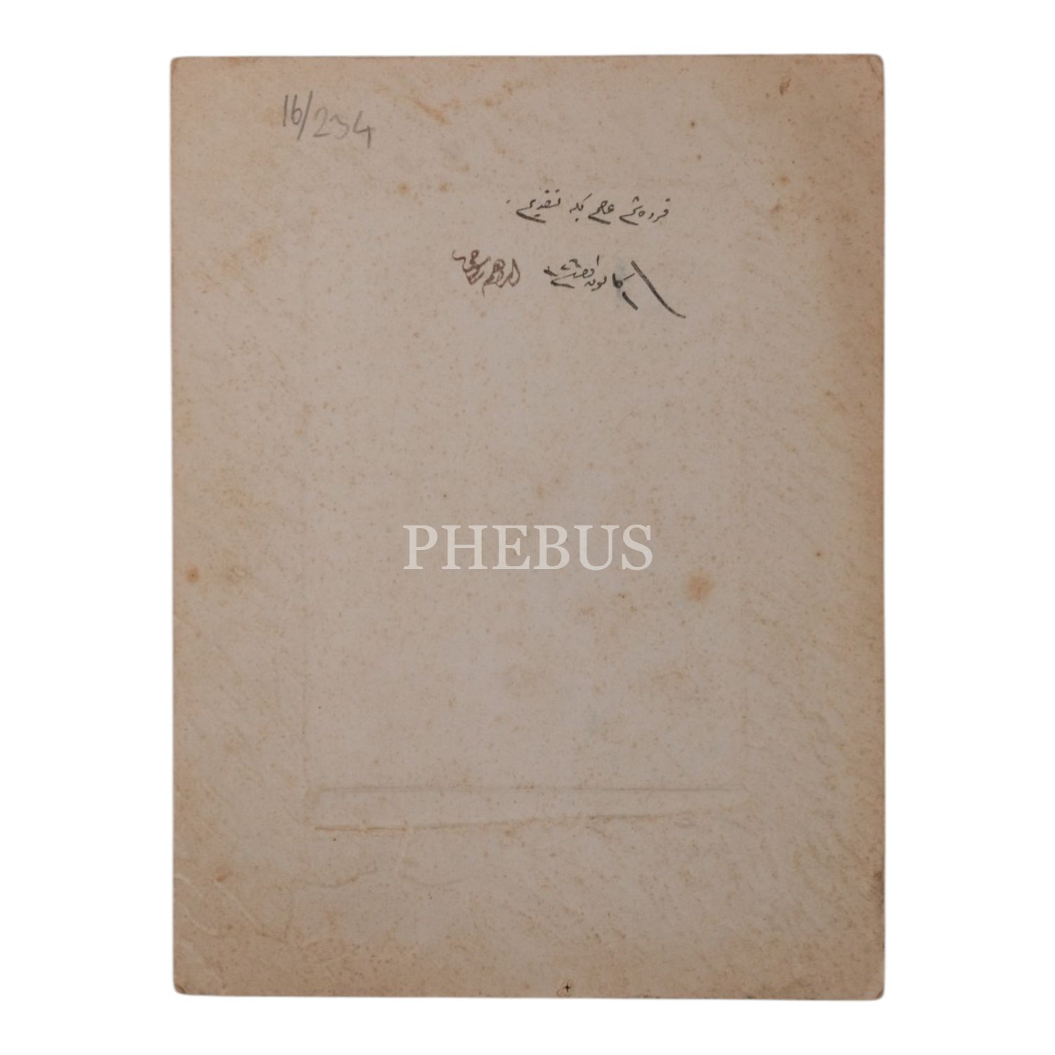 Fotoğrafın arkasında, "Kardeşim Asım Bey´e takdim." ithafıyla 1 Kanunuevvel 1326 tarihinde "İbrahim Rüsuhi" imzasıyla imzalanmıştır.