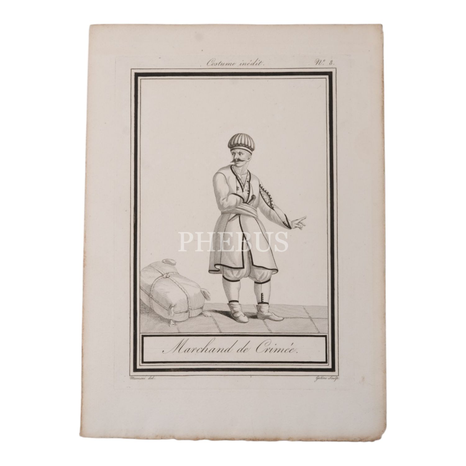 Georges-Jacques Gatine´in "Costumes orientaux inédits" adlı eserinde yer verdiği Kırımlı tüccar gravürü, "Merchand de Crimee". 22x31 cm...
