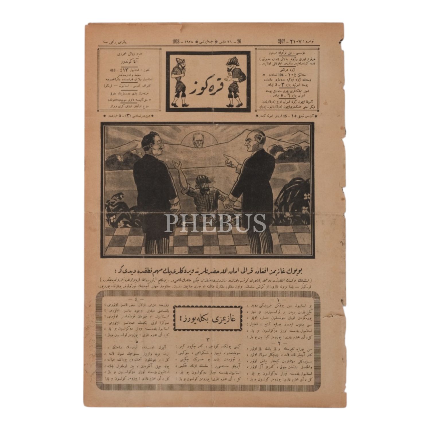 Mustafa Kemal Atatürk ve Afgan Kralı Amanullah Han´ın resmedildiği kapağıyla KARAGÖZ dergisinin 26 Mayıs 1928 tarihli nüshası, 28x40 cm...