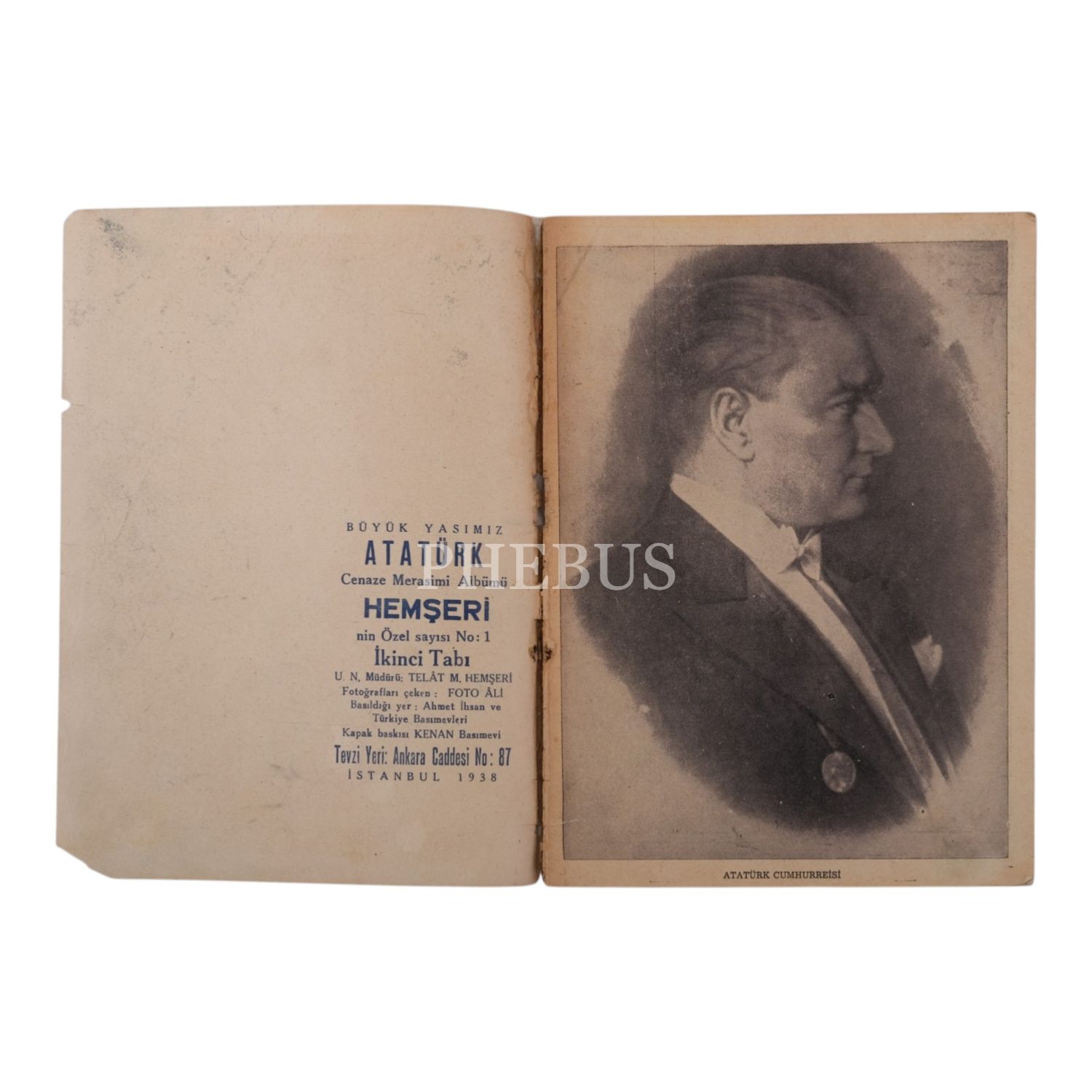 HEMŞERİ dergisinin özel sayı olarak yayımladığı, "Büyük Yasımız: ATATÜRK Cenaze Merasimi Albümü", fotoğrafları çeken: Foto Âli, 1938, 20x27,5 cm...