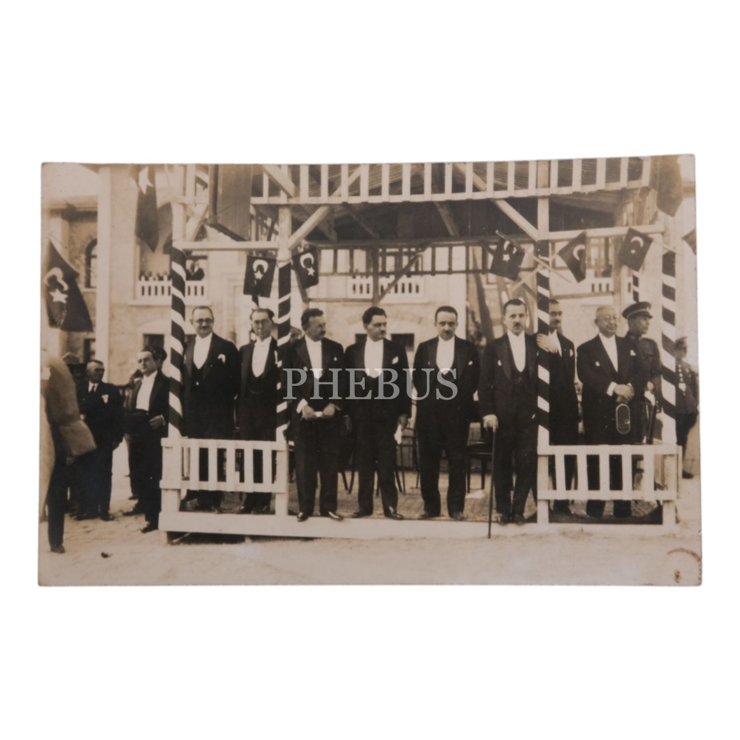TBMM önünde düzenlenen bir Cumhuriyet Bayramı töreninde, Şükrü Kaya, Tevfik Rüştü Aras ve Refik Saydam´ın prokolol bölümünde bir arada görüldüğü bir fotoğraf, 14x9 cm...
