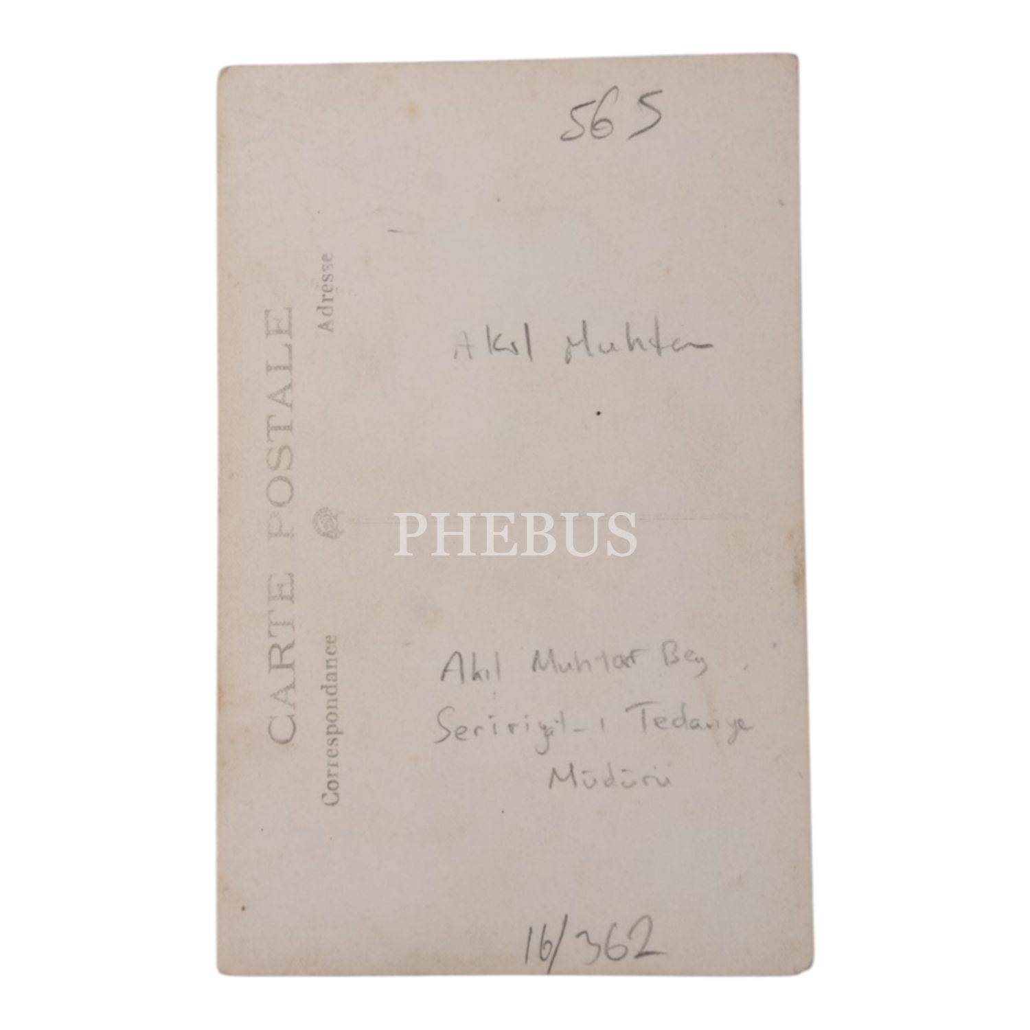 "Seririyat-ı Tedaviye Müdürü Muhteremi Akil Muhtar Bey", 9x14 cm...