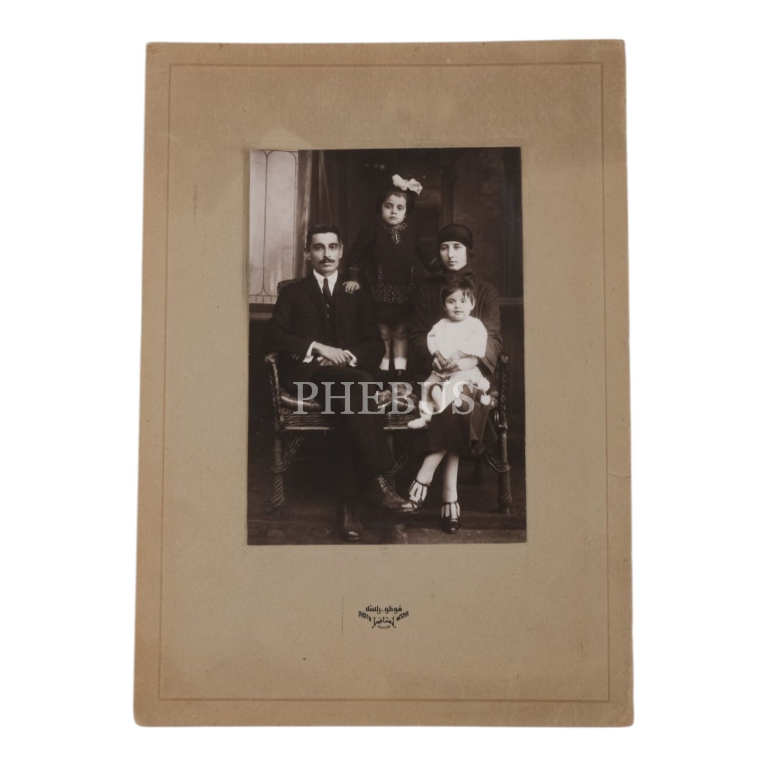 Bir çiftin, çocuklarıyla birlikte Resna (Resne) Fotoğrafhanesi´nde (Stamboul) aldırdığı hatıra fotoğrafı, fotoğraf 11x16 cm, paspartu 19,5x27,5 cm...