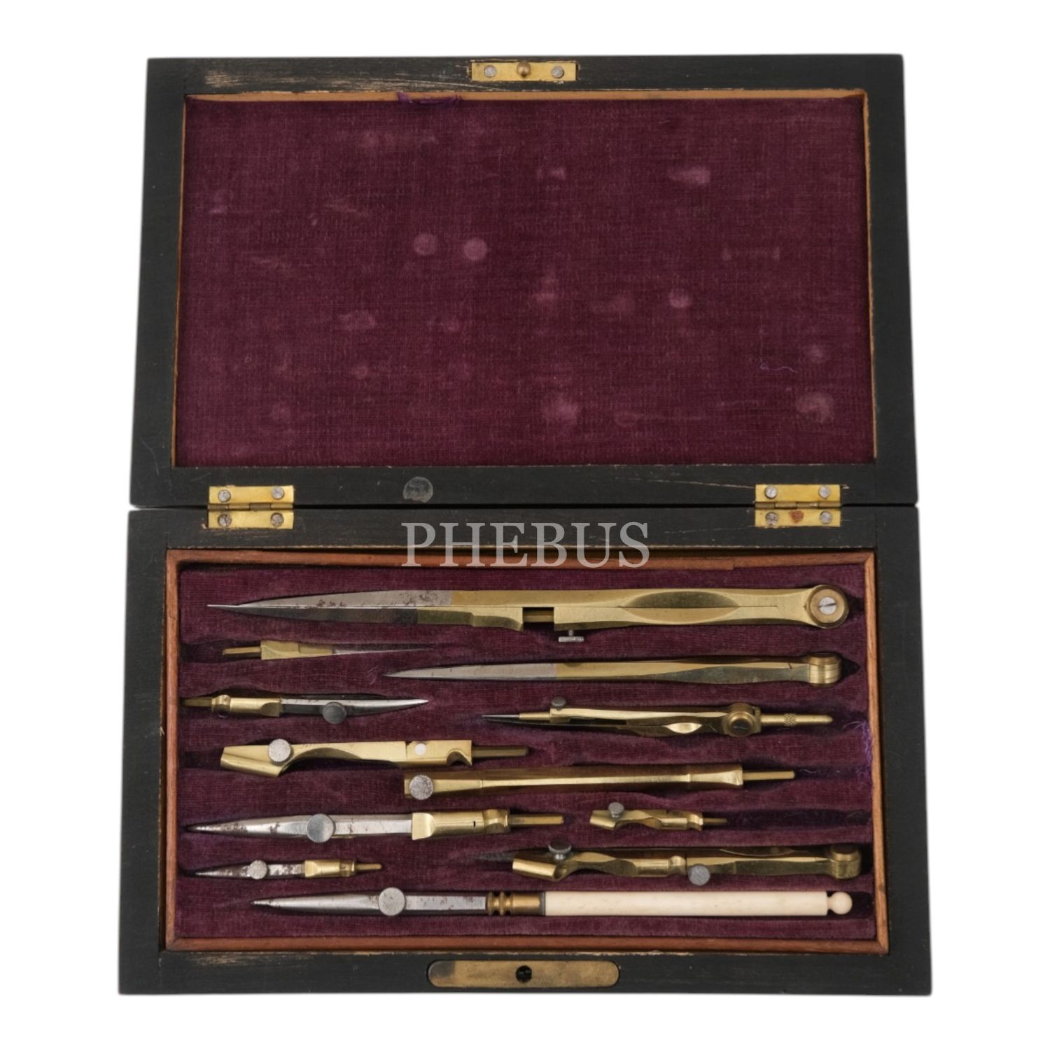 Orijinal ahşap kutusunda 12 parça pergel takımı, 21x12x5 cm...