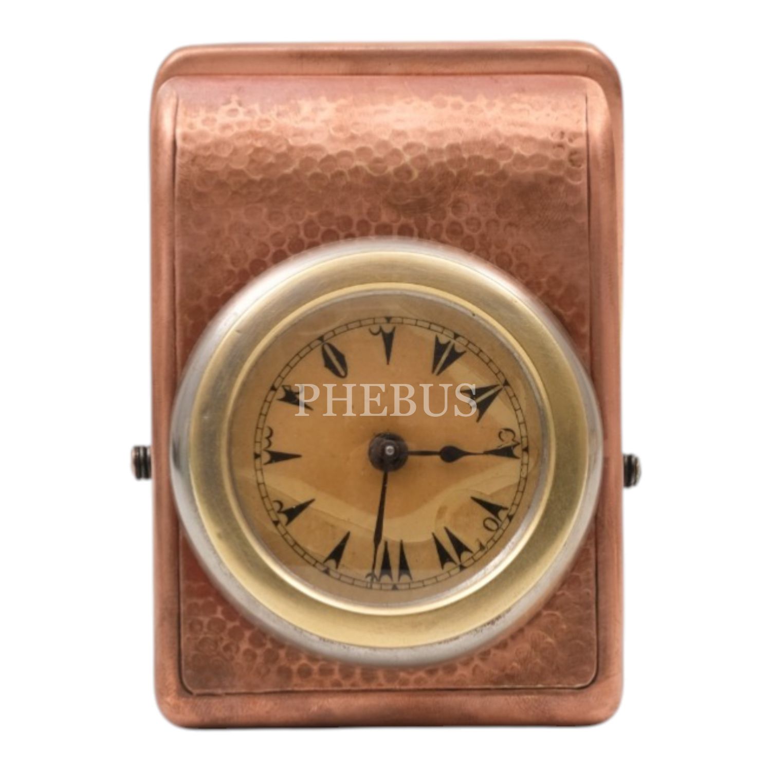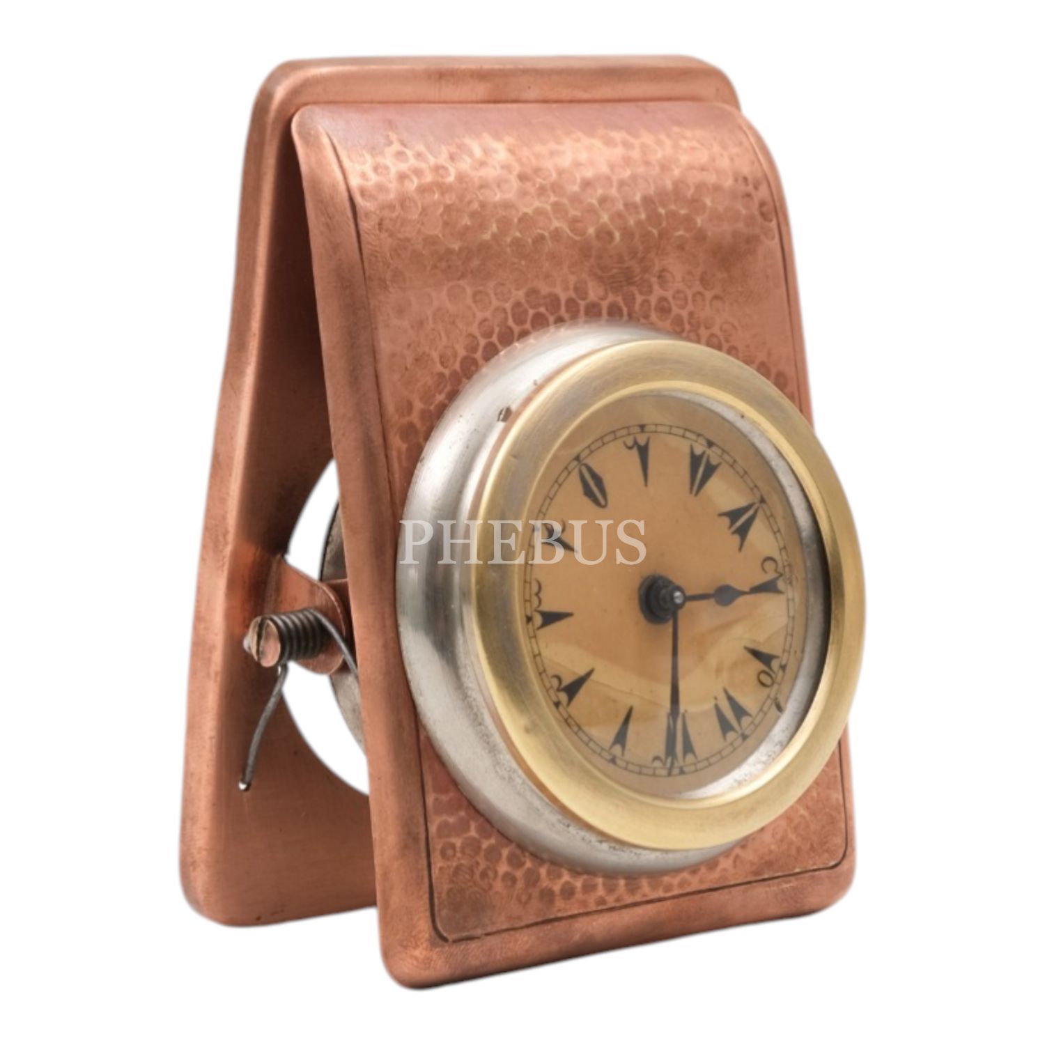 Osmanlıca kadranlı, bakır kasalı kurmalı masa saati, çalışır durumda, 8x10x4 cm...