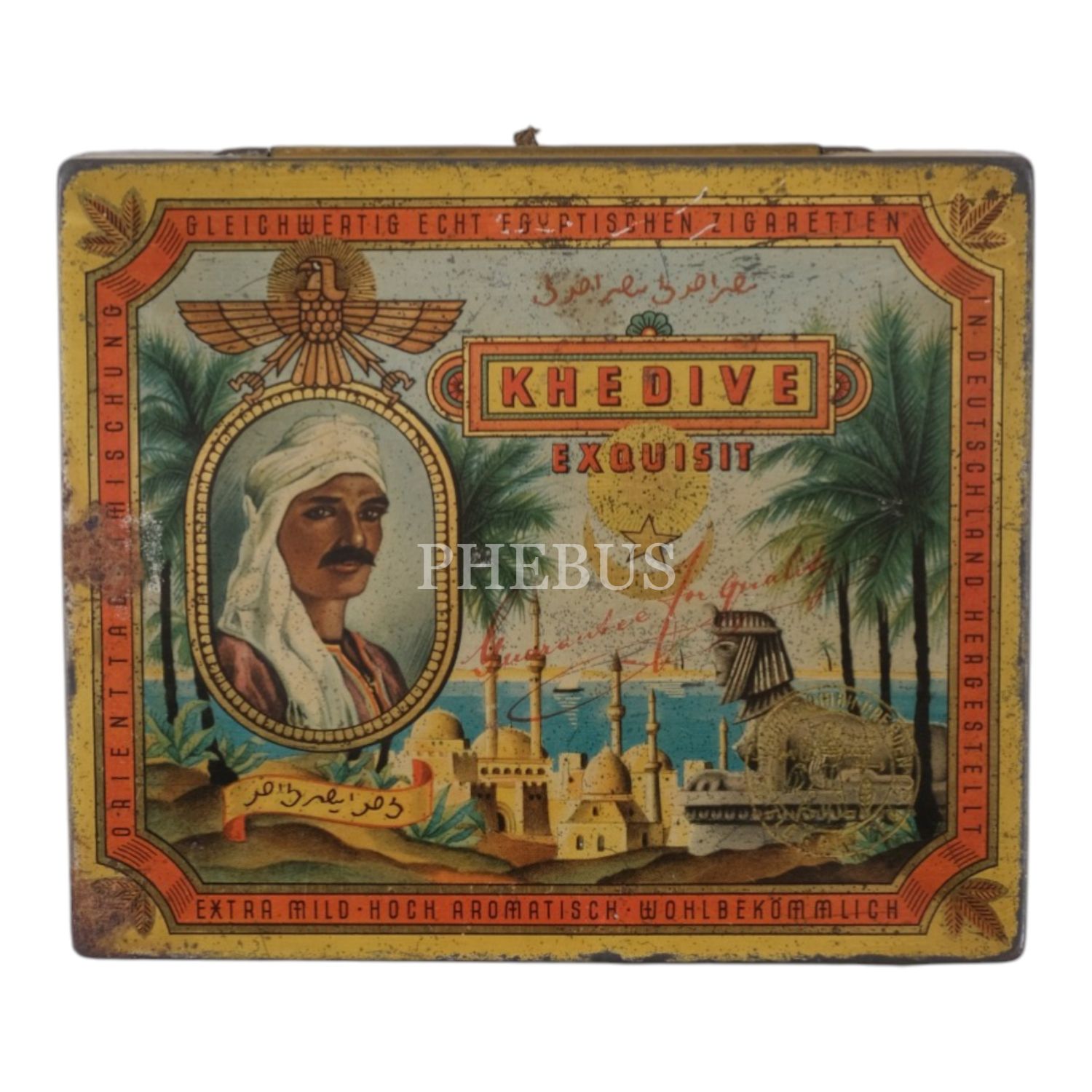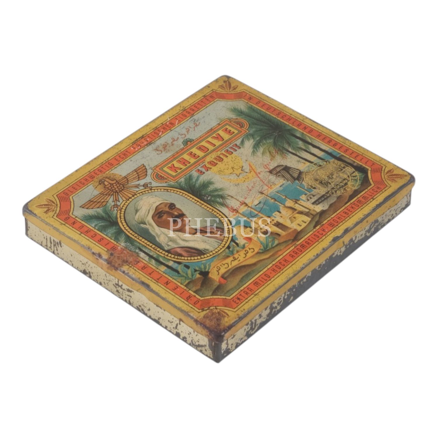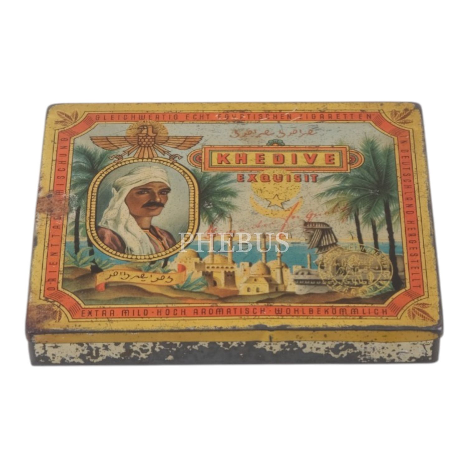 1930´lu yıllarda Almanya´da üretilen "KHEDIVE Exquisit" sigarasının teneke kutusu,14x11x2 cm...