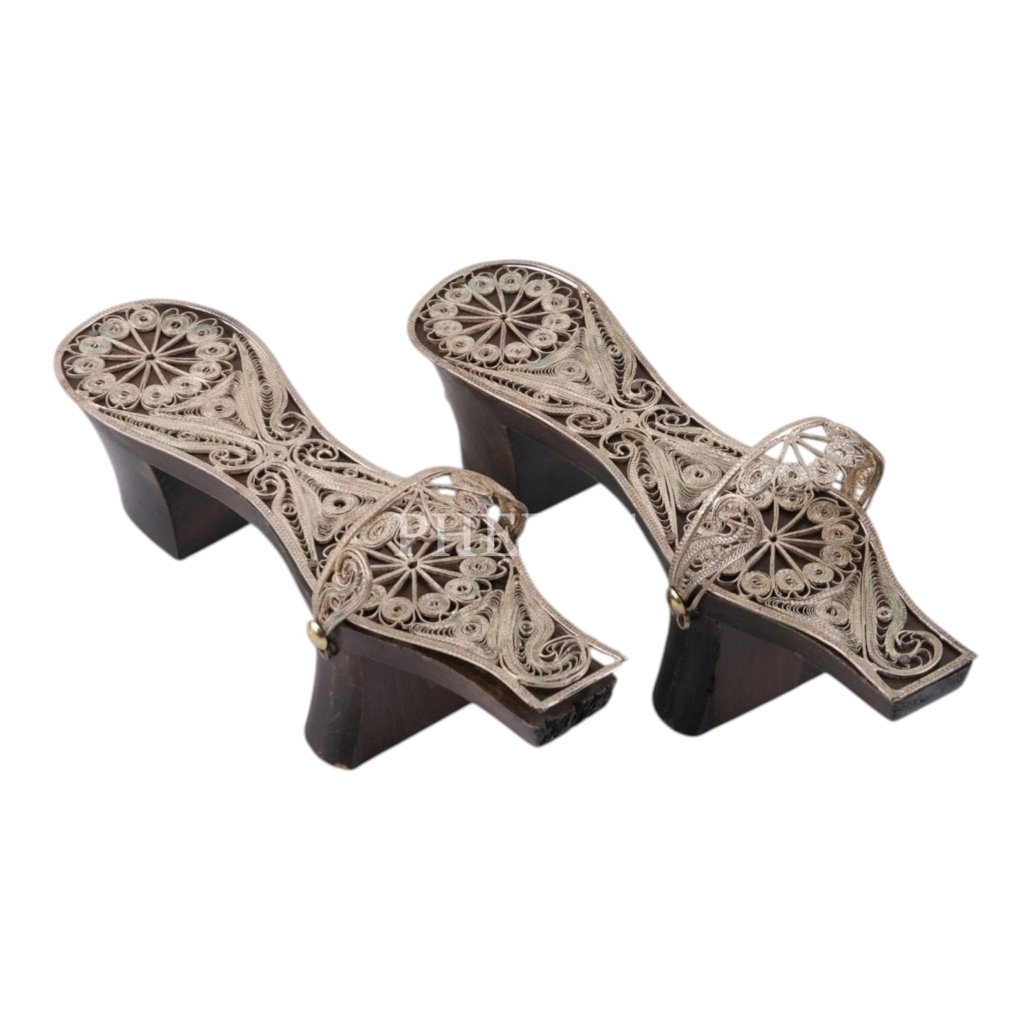 Telkari işçilikli, bir çift takunya, 17x10 cm...