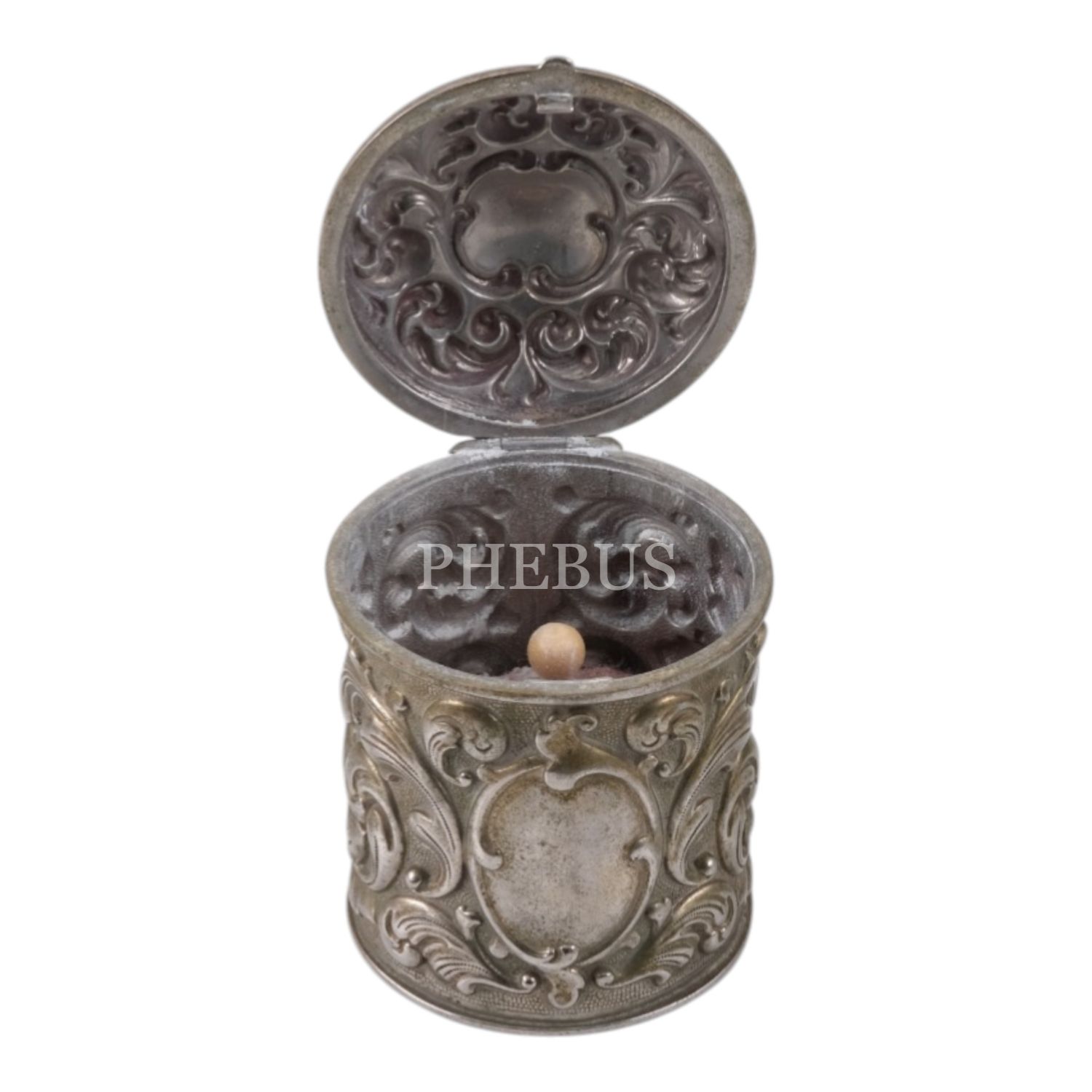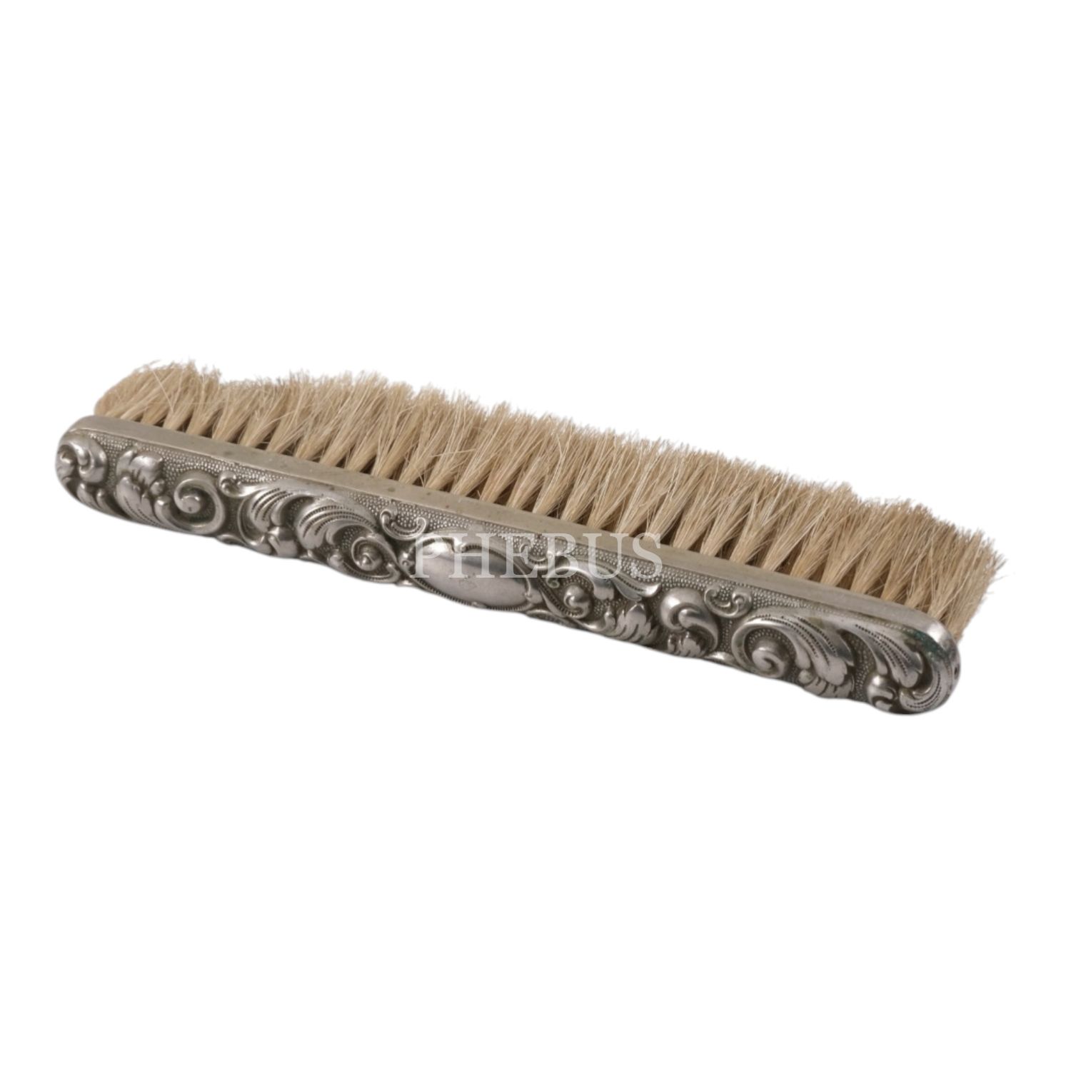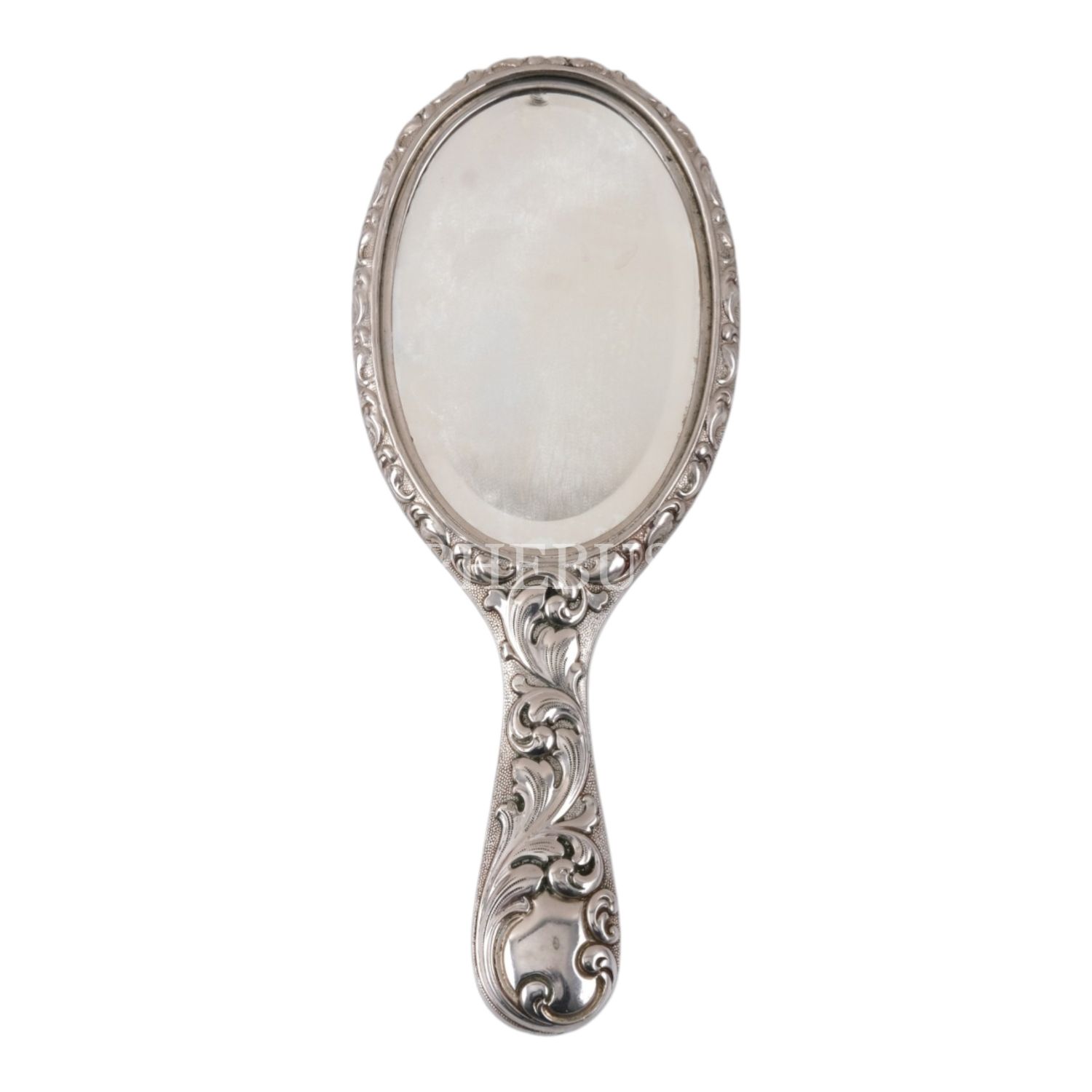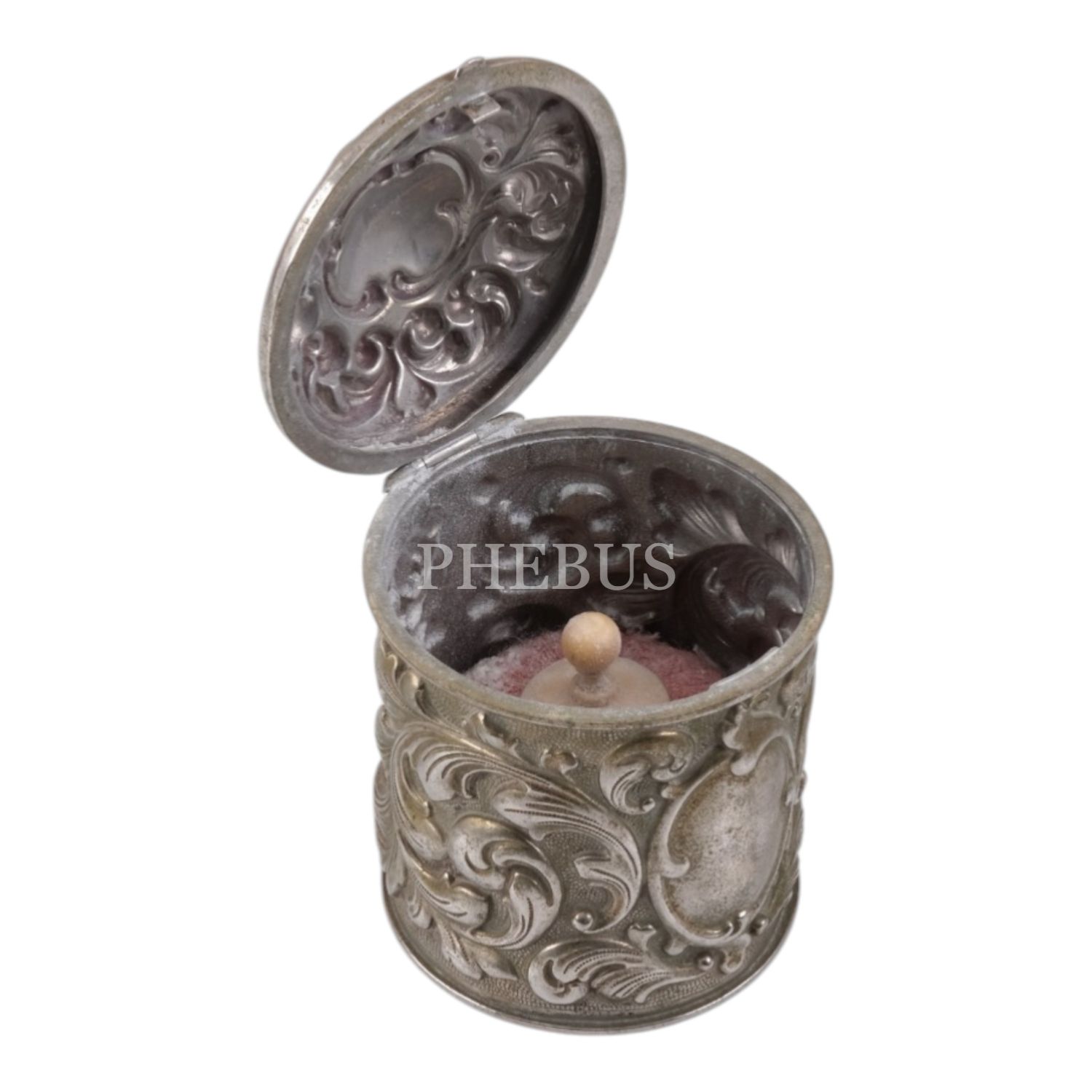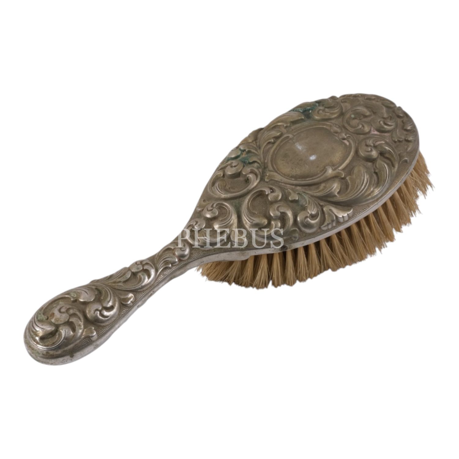 Ayna, tarak, fırça ve pudra kutusundan oluşan 5 parçalık, alpaka (Alman gümüşü) çeyiz seti...