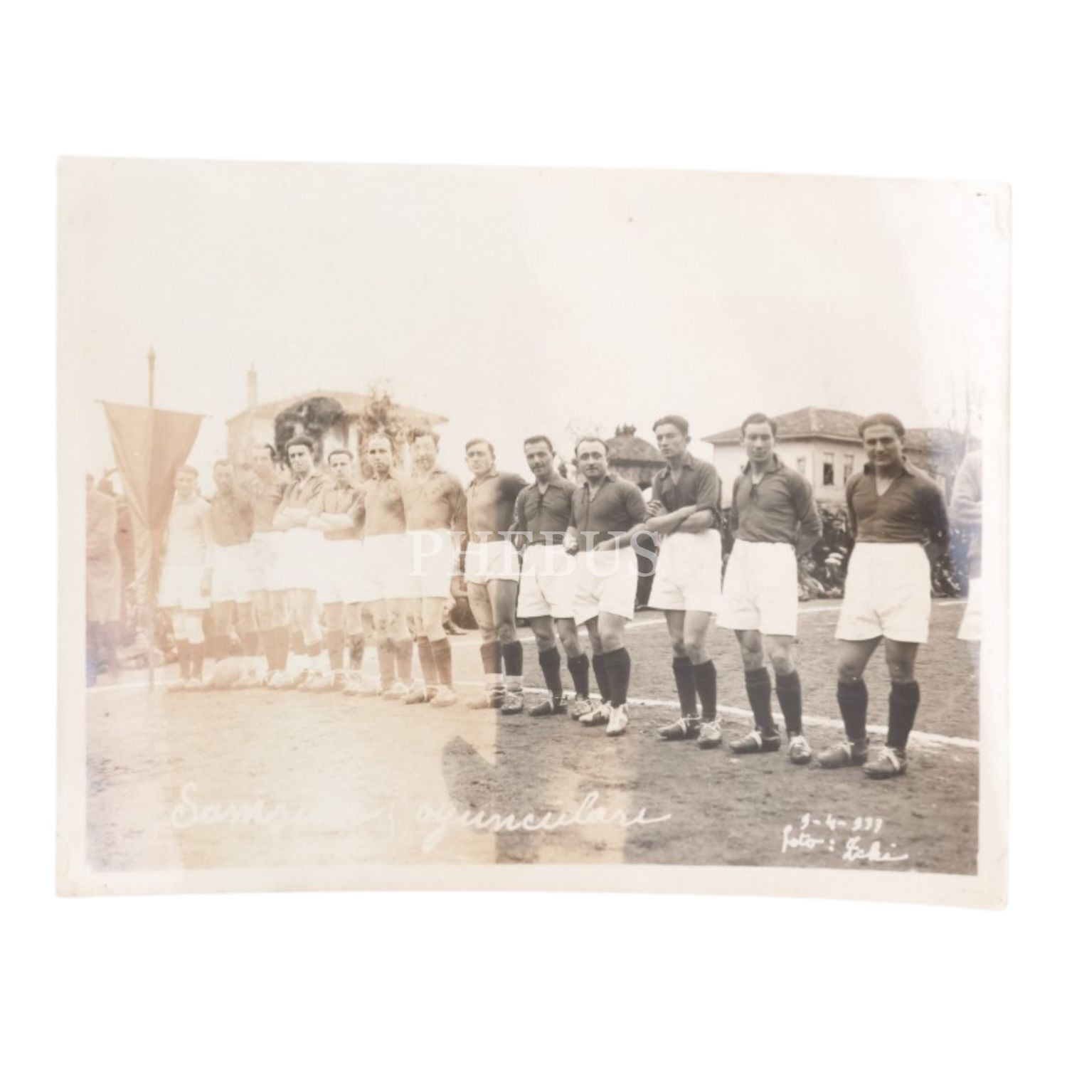 1933 senesi Samsun Futbol Takımı´nın 2 adet hatıra fotoğrafı ve Hakem Nuri Bey´in fotoğrafı, "Foto: Zeki" 13x9 cm...
