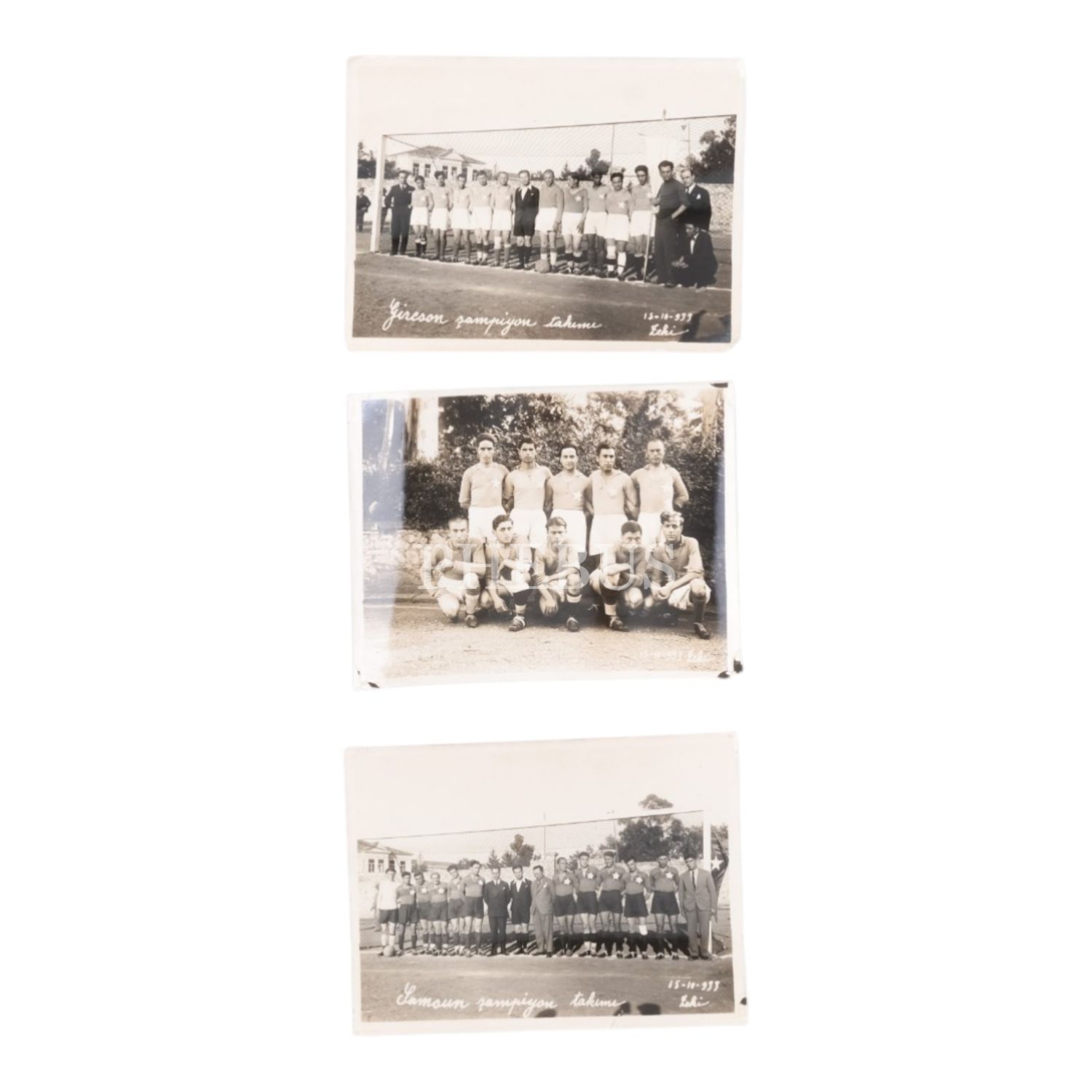 1933 senesinde Samsun Futbol Takımı´nın hatıra fotoğrafı ve Giresun Futbol Takımı´nın hatıra fotoğrafı, "Foto: Zeki" 13x9 cm...