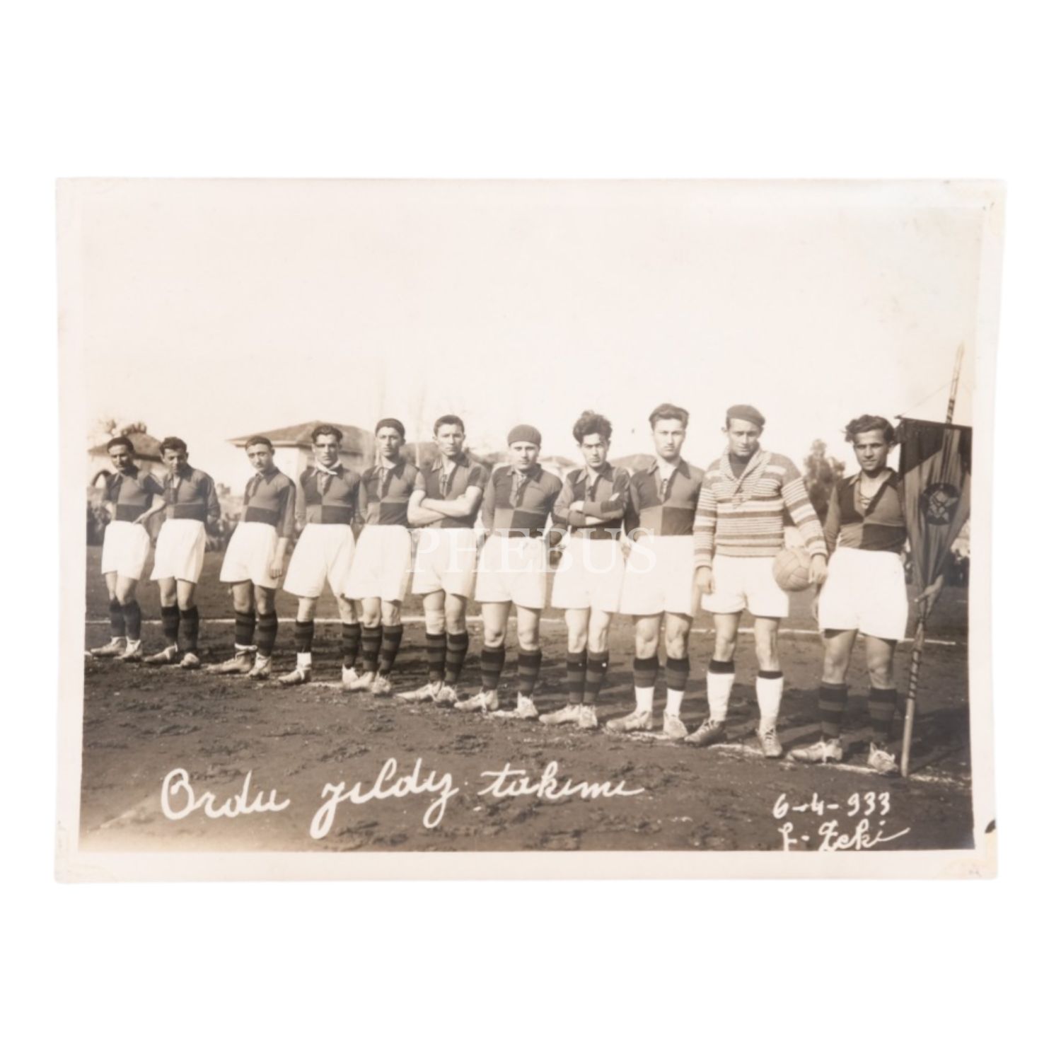 1933 senesinde Ordu Yıldız Takımı´nın hatıra fotoğrafı, "Foto: Zeki" 13x9 cm...