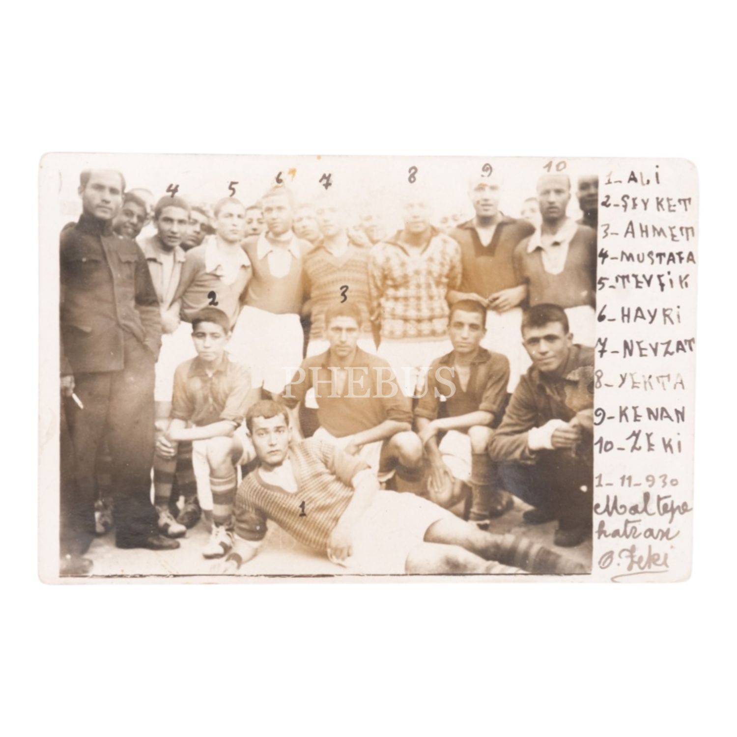 1930 senesinde bir futbol takımının Maltepe´de çektirdikleri hatıra fotoğrafı, 14x9 cm...