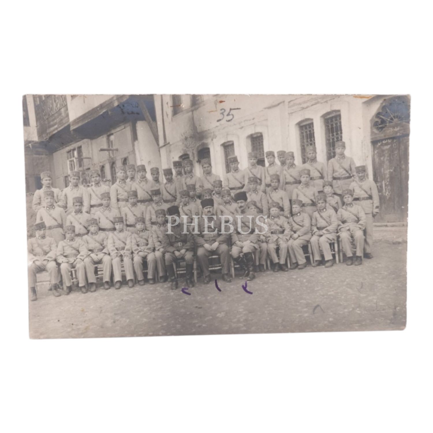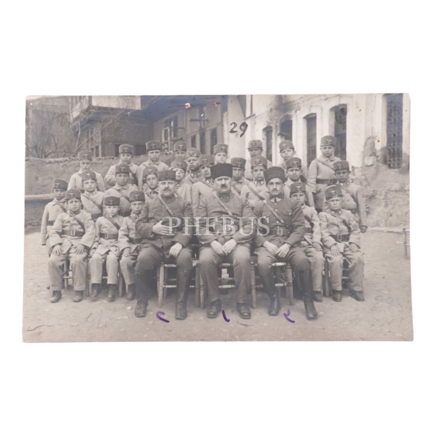 Osmanlı´da bir askeri okulun öğrencileri ve komutanlarının üç adet hatıra fotoğrafı, 14x9 cm...