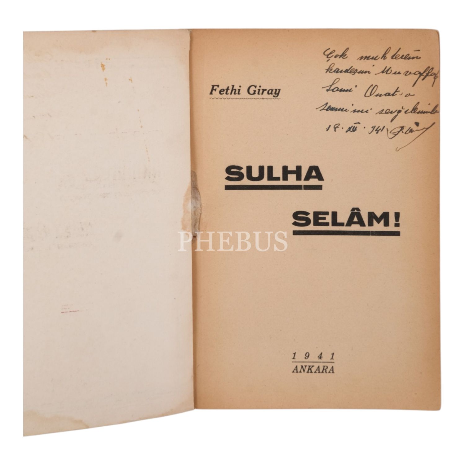 SULHA SELAM!, Fethi Giray, 1941, Titaş Basımevi, 32 sayfa, 13x18 cm...