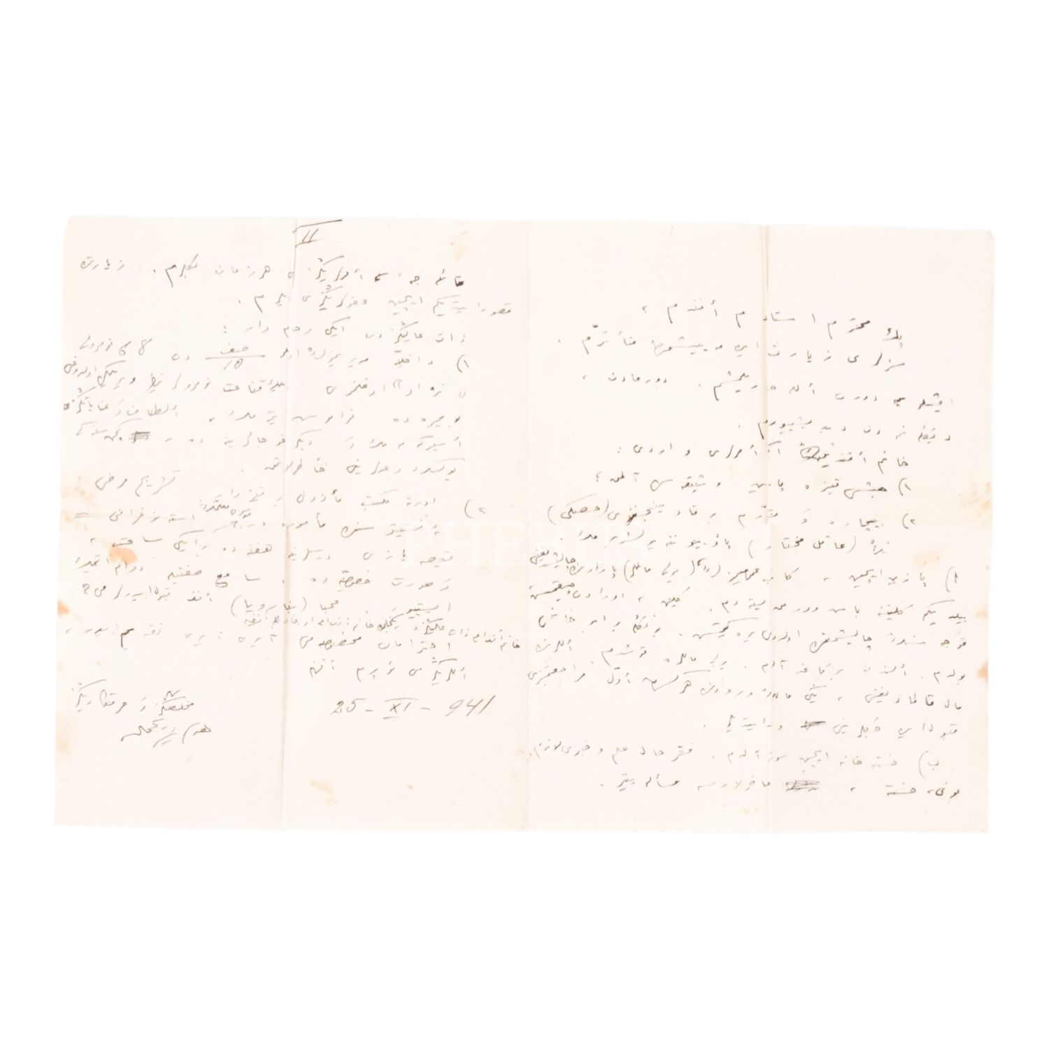 Hamamizade İhsan Bey´e hitaben kaleme alınmış, "Hidayet Kemal" imzalı mektup, 1941, 32x21 cm...