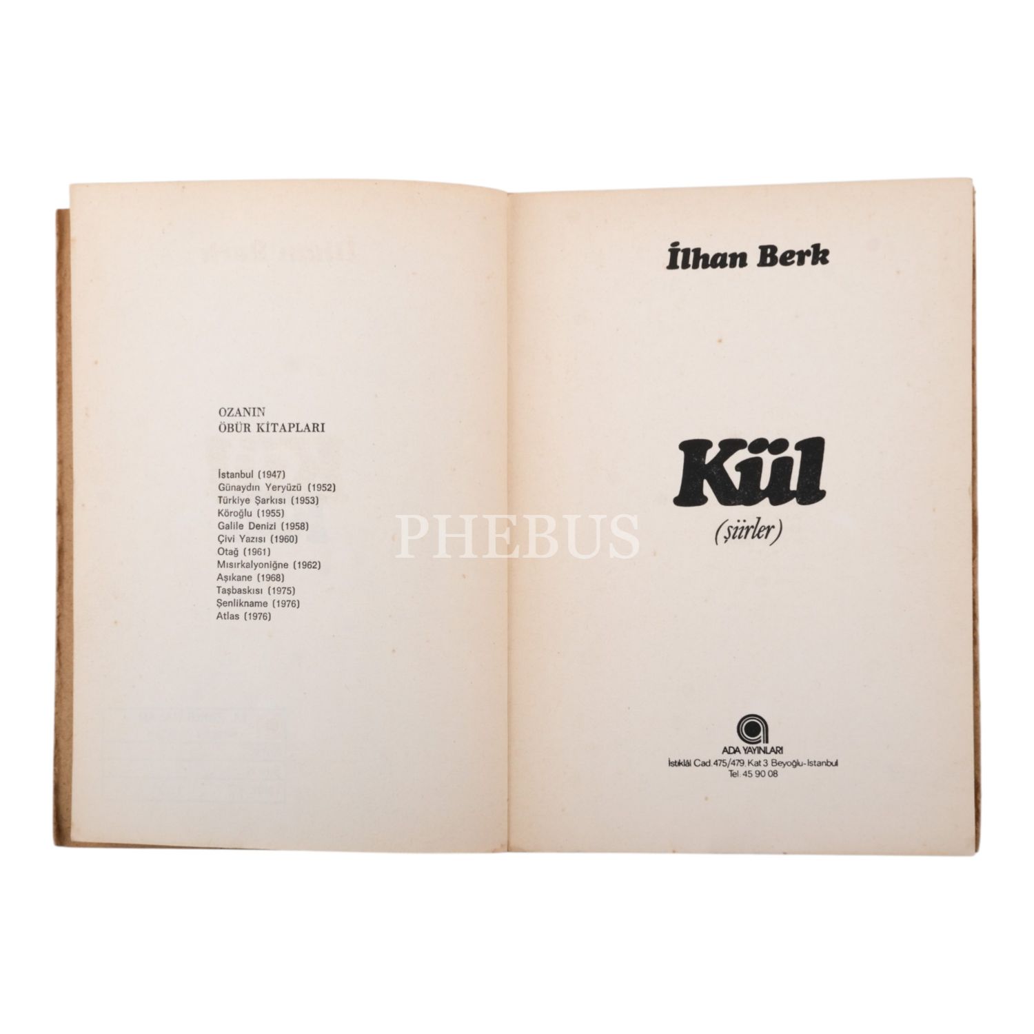 KÜL, İlhan Berk, 1978, Ada Yayınları, 117 sayfa, 14x20 cm...