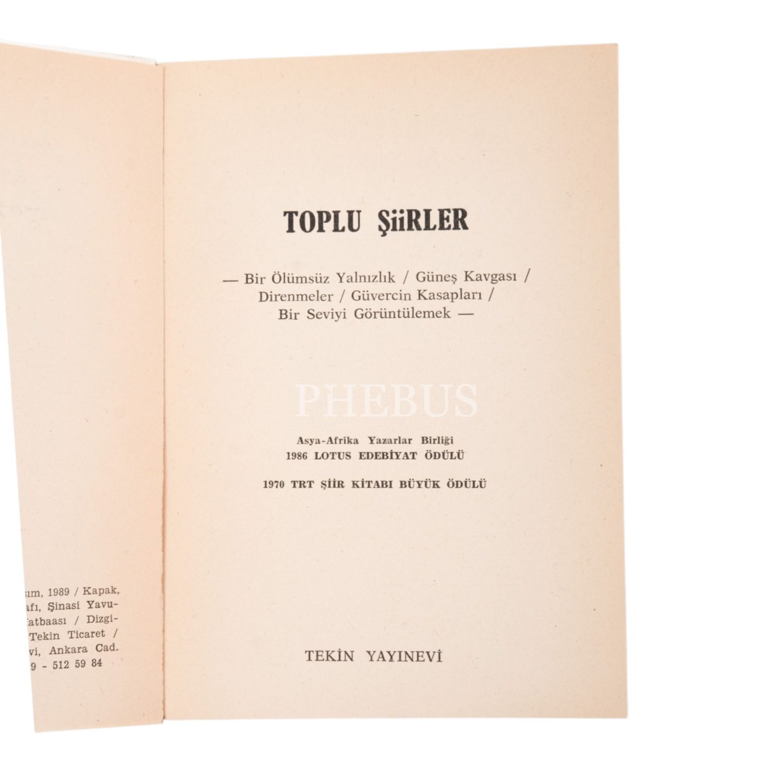 TOPLU ŞİİRLER, Tahsin Saraç, 1989, Tekin Yayınevi, 191 sayfa, 14x20 cm...