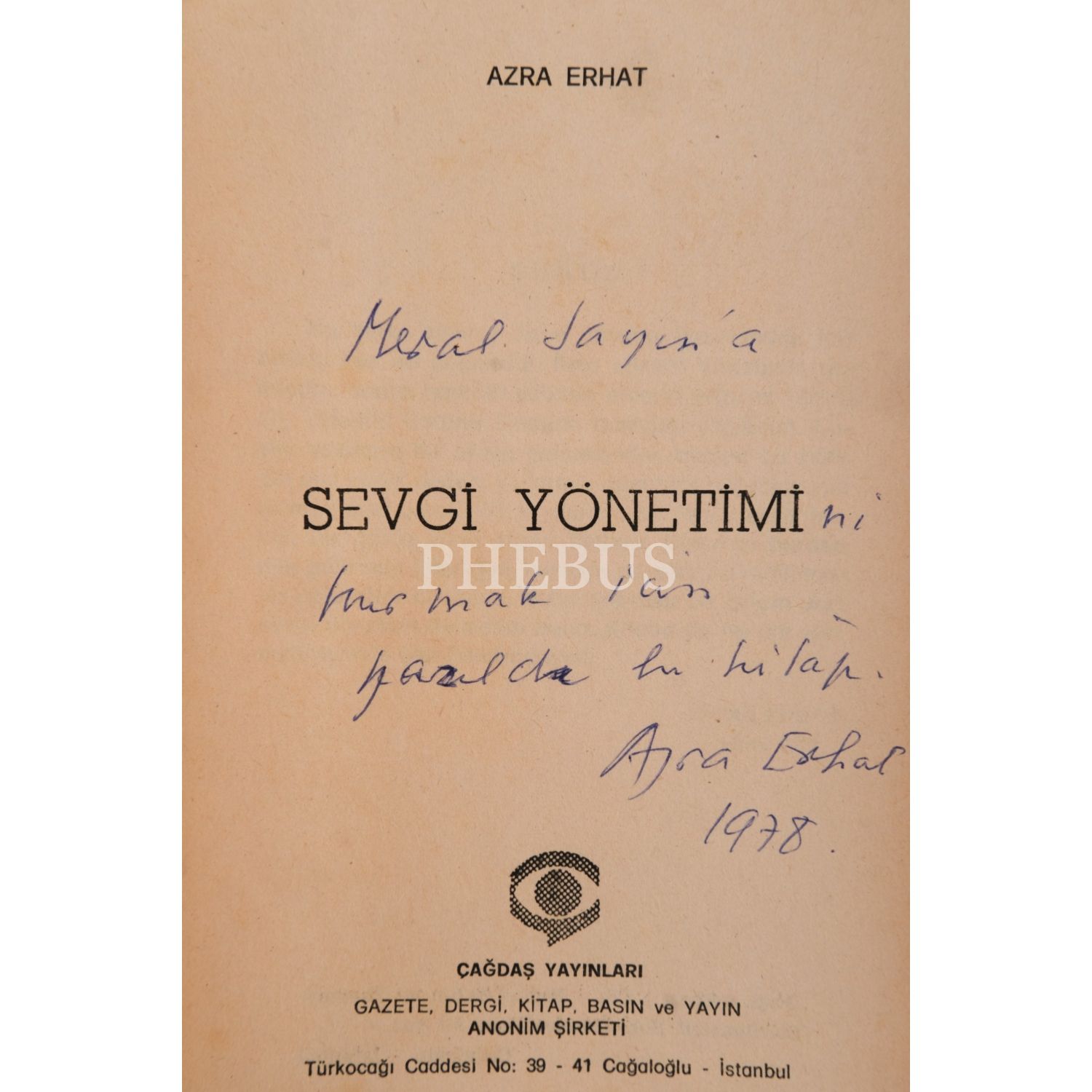 SEVGİ YÖNETİMİ, Azra Erhat, Çağdaş Yayınları, 278 sayfa, 13x19 cm...