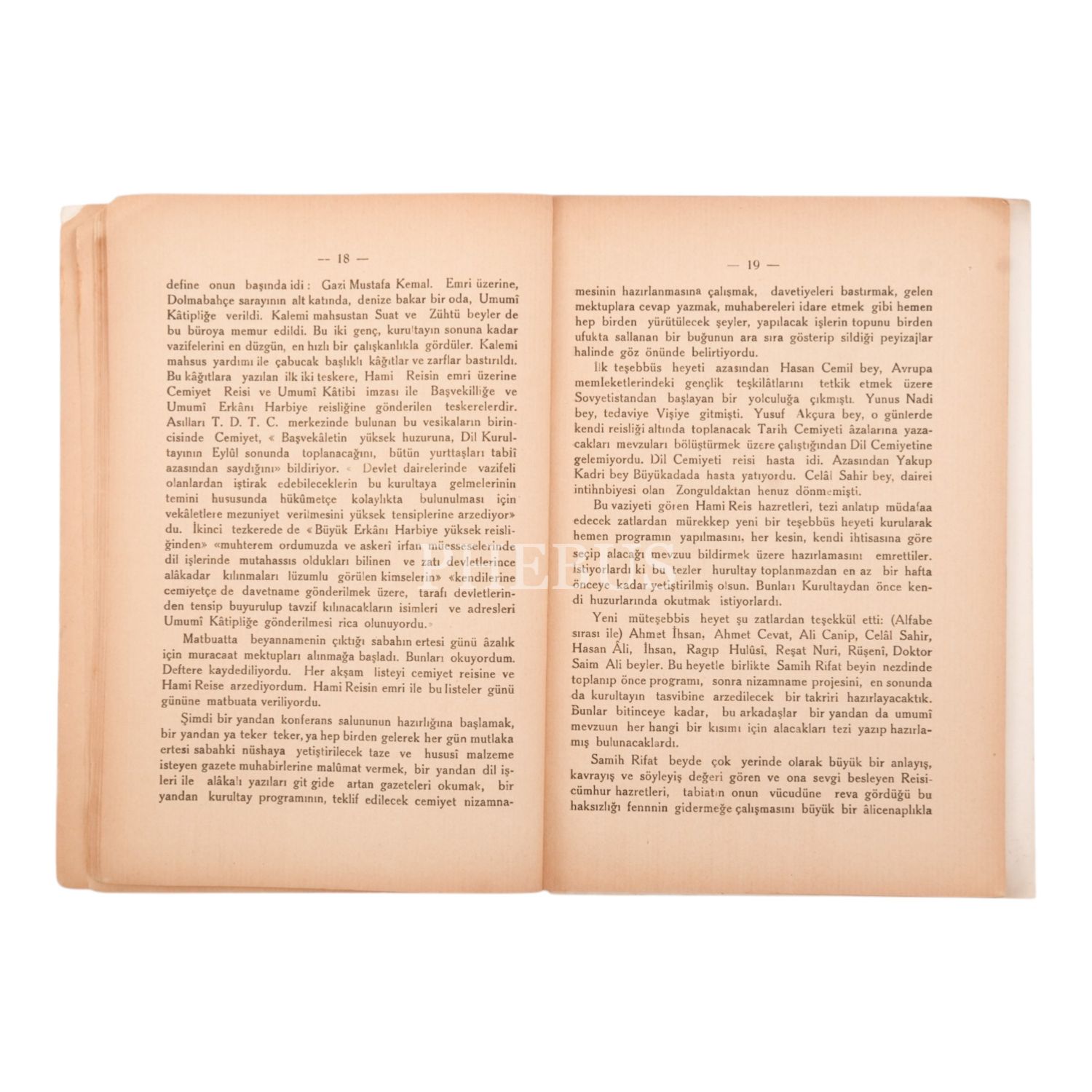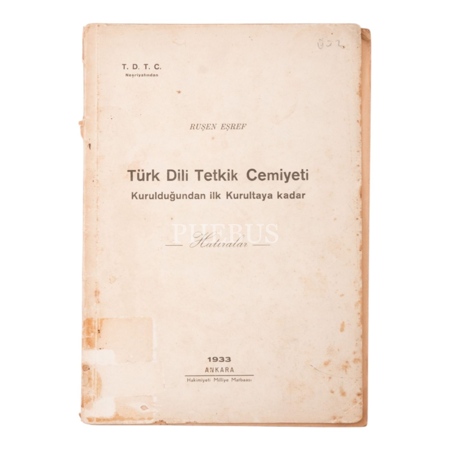 TÜRK DİLİ TETKİK CEMİYETİ (Kurulduğundan İlk Kurultaya Kadar), 1933, Hakimiyeti Milliye Matbaası, 52 sayfa, 17x24 cm...
