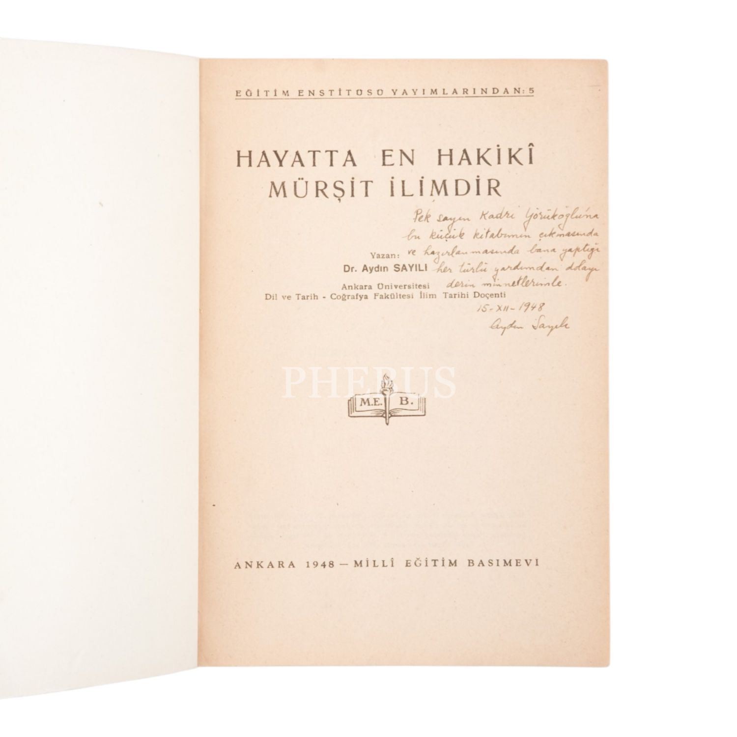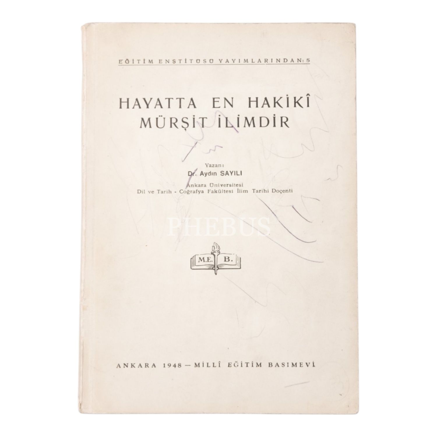 HAYATTA EN HAKİKİ MÜRŞİT İLİMDİR, Aydın Sayılı, 1948, Milli Eğitim Basımevi, 201 sayfa, 17x24 cm...