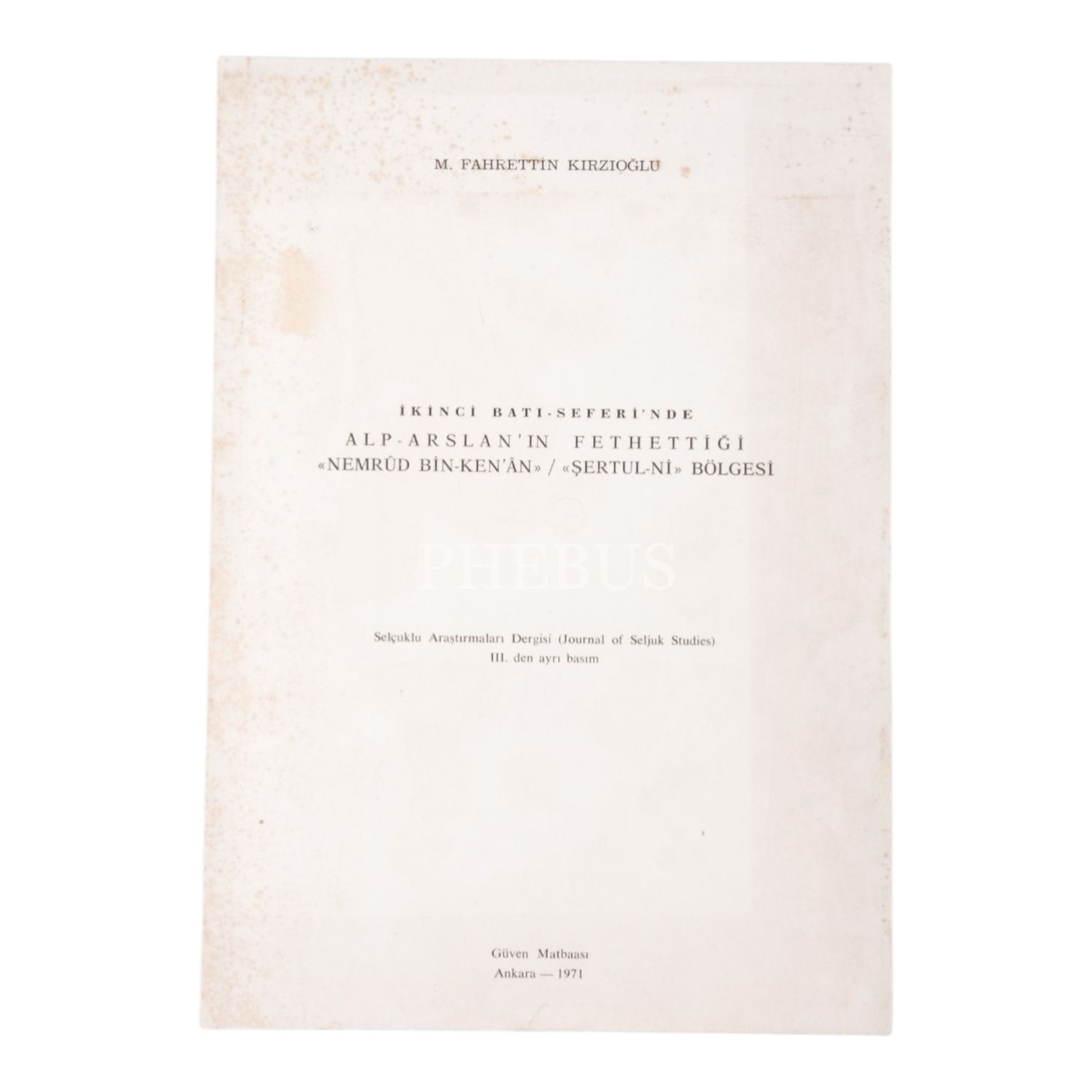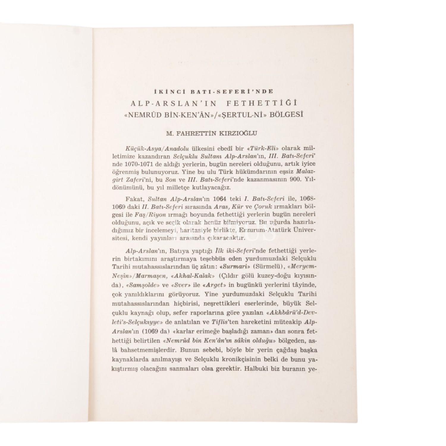 İKİNCİ BATI SEFERİNDE ALPARSLAN´IN FETHETTİĞİ NEMRUD BİNKENAN ŞERTÜLNİ BÖLGESİ, M. Fahrettin Kırzıoğlu, 10 sayfa, 16x23 cm....