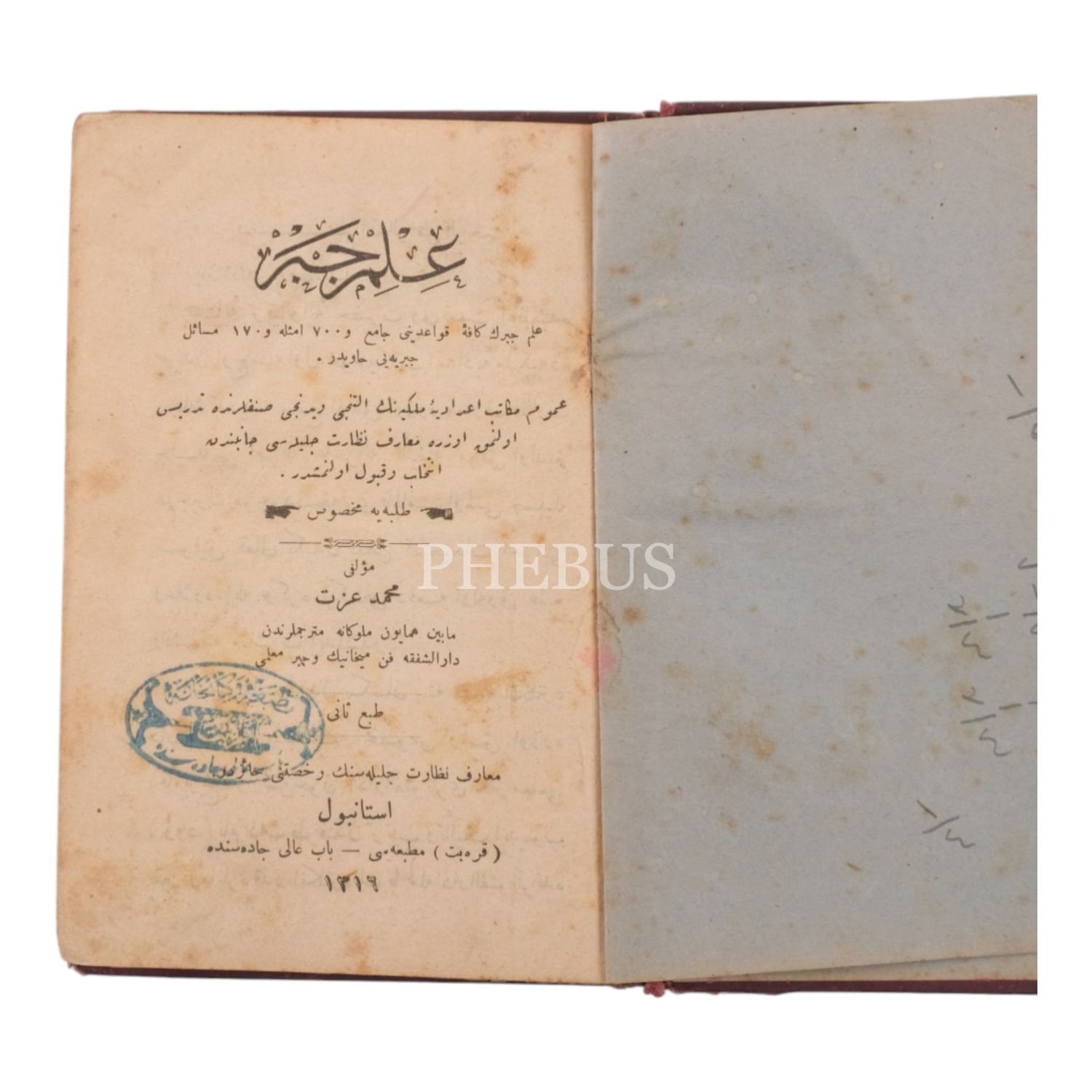 Taşra Mekâtib-i İdadiyesinin 6. ve 7. sınıflarında tedris olunmak üzere Mâbeyn-i Hümâyun mütercimi Mehmed İzzet tarafından yazılan matematik eseri.