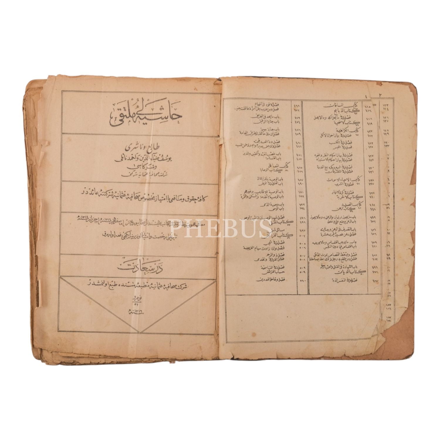 Hanefî mezhebinin en bilinen temel metinlerinden Mülteka´l-Ebhur´un satır arası açıklamalı ve hâşiyeli taş baskısı.