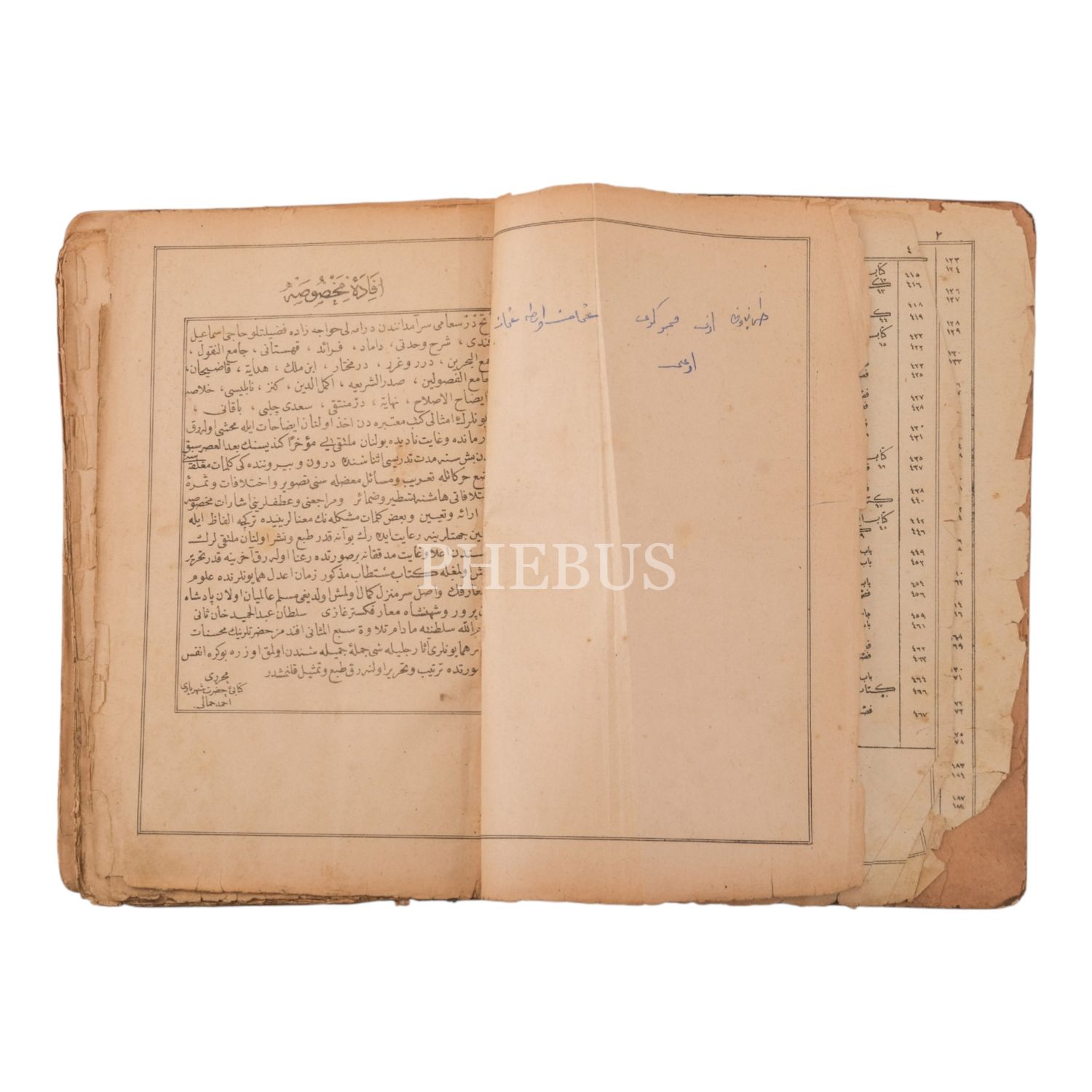 *Başta ve sonda 20 kadar yaprağın kenarları yorgun kondisyondadır. En baştaki ilk fihrist sayfasının 5x8 cm´lik bir bölümü kopmuştur, içindekilerin oradakı kısmı eksiktir.