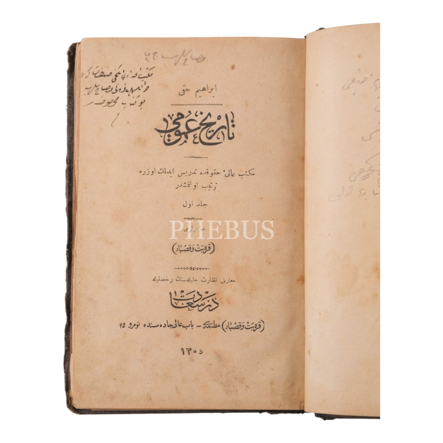 TÂRÎH-İ UMÛMÎ, 1. cilt, İbrahim Hakkı, 1305, Karabet ve Kaspar Matbaası, 357 sayfa, 13x19 cm...