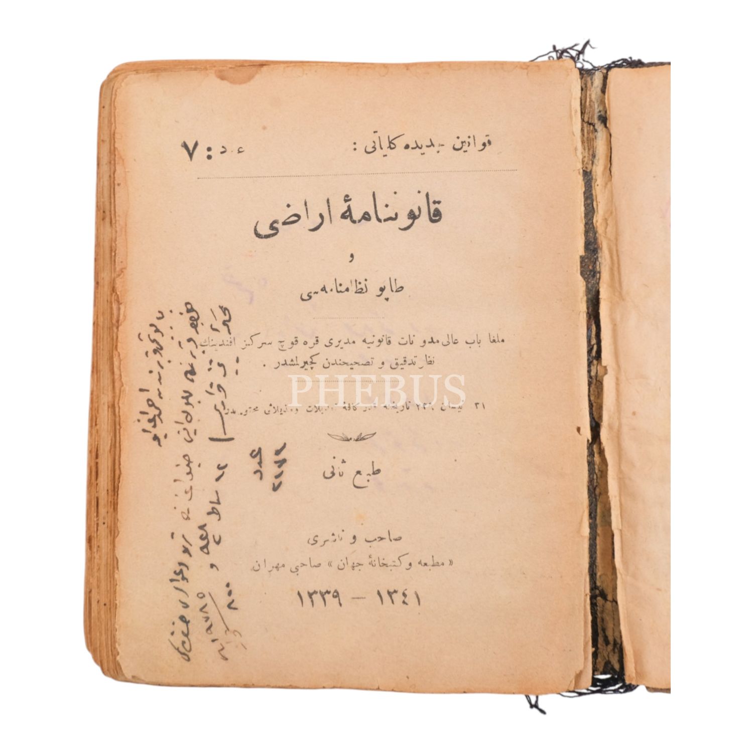 1- KÂNUNNÂME-İ ARÂZÎ ve TAPU NİZAMNÂMESİ, 1339-1341, Matbaa ve Kitabhâne-i Cihan, 733 sayfa.