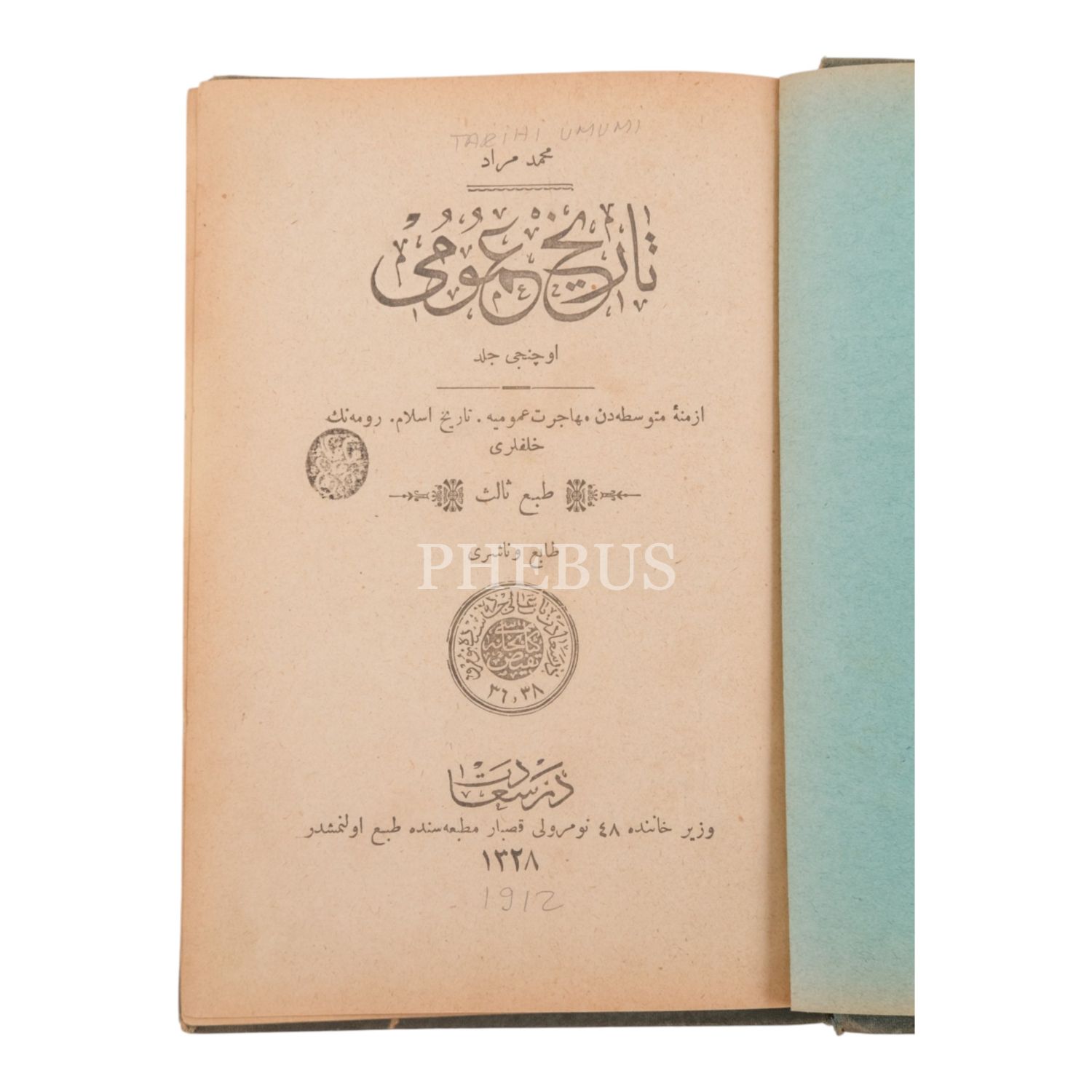TÂRÎH-İ UMÛMÎ, 3. cilt, Mizancı Murad, 1328, Kaspar Matbaası, 356 sayfa, 14x20 cm...