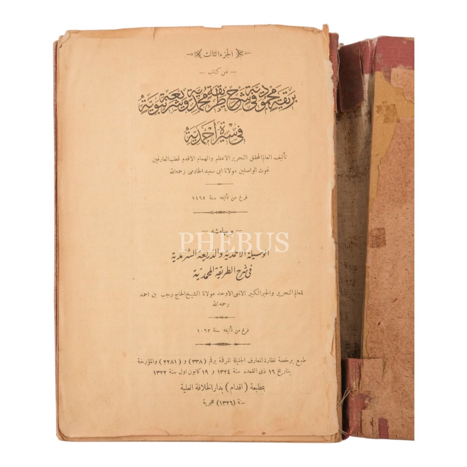 BERÎKATU MUHAMMEDİYE fî ŞERH-İ TARÎKATİ MUHAMMEDİYE ve ŞERÎATİ NEBEVİYE fî SÎRETİ AHMEDİYE kenarında VESÎLETÜ´L-AHMEDİYE, 4 cilt iki kitapta, Ebu Said Hâdimî-Şeyh Hacı Receb, 1326, Matbaa-i İkdâm, 389+389, 371+4&230+4, 18x27 cm...