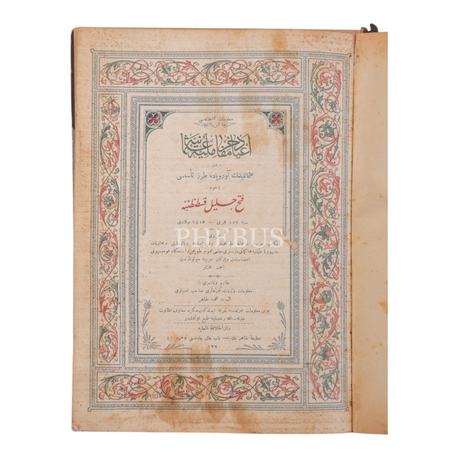 A´YÂD-I MEFÂHİR-İ MİLLİYE-İ OSMÂNİYE´DEN OSMANLILIĞIN AVRUPA´DA TARZ-I TESÎSİ (YAHUD FETH-İ CELÎL-İ KOSTANTİNİYE), Seyyid Mehmed Tahir, 1316, Tahir Bay Matbaası, 311 sayfa, 20x28 cm...