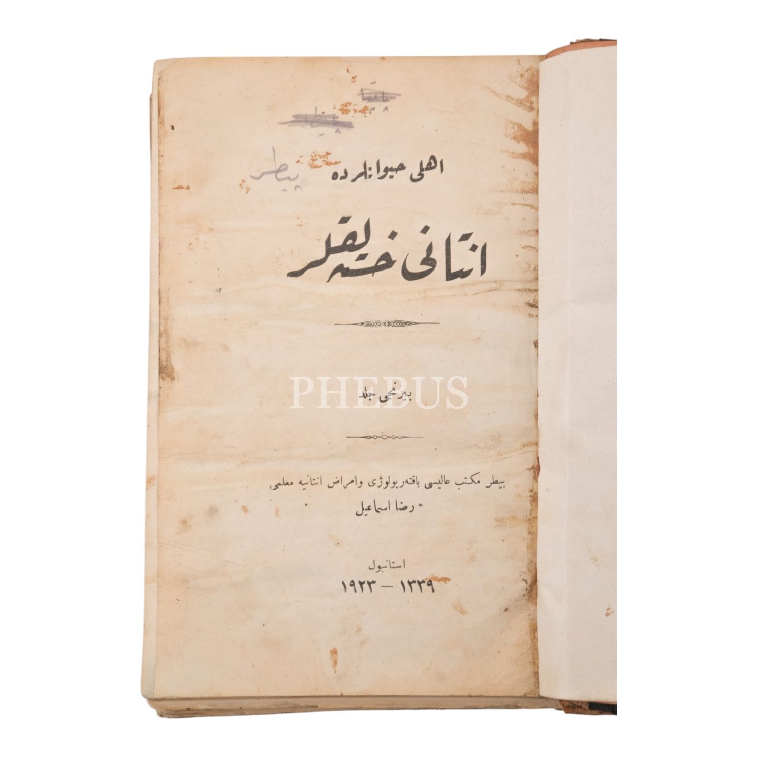 EHLÎ HAYVANLARDA İNTÂNÎ HASTALIKLAR, 1. cilt, Rızâ İsmail, Hilal Matbaası, 404+4 sayfa, 15x22 cm...