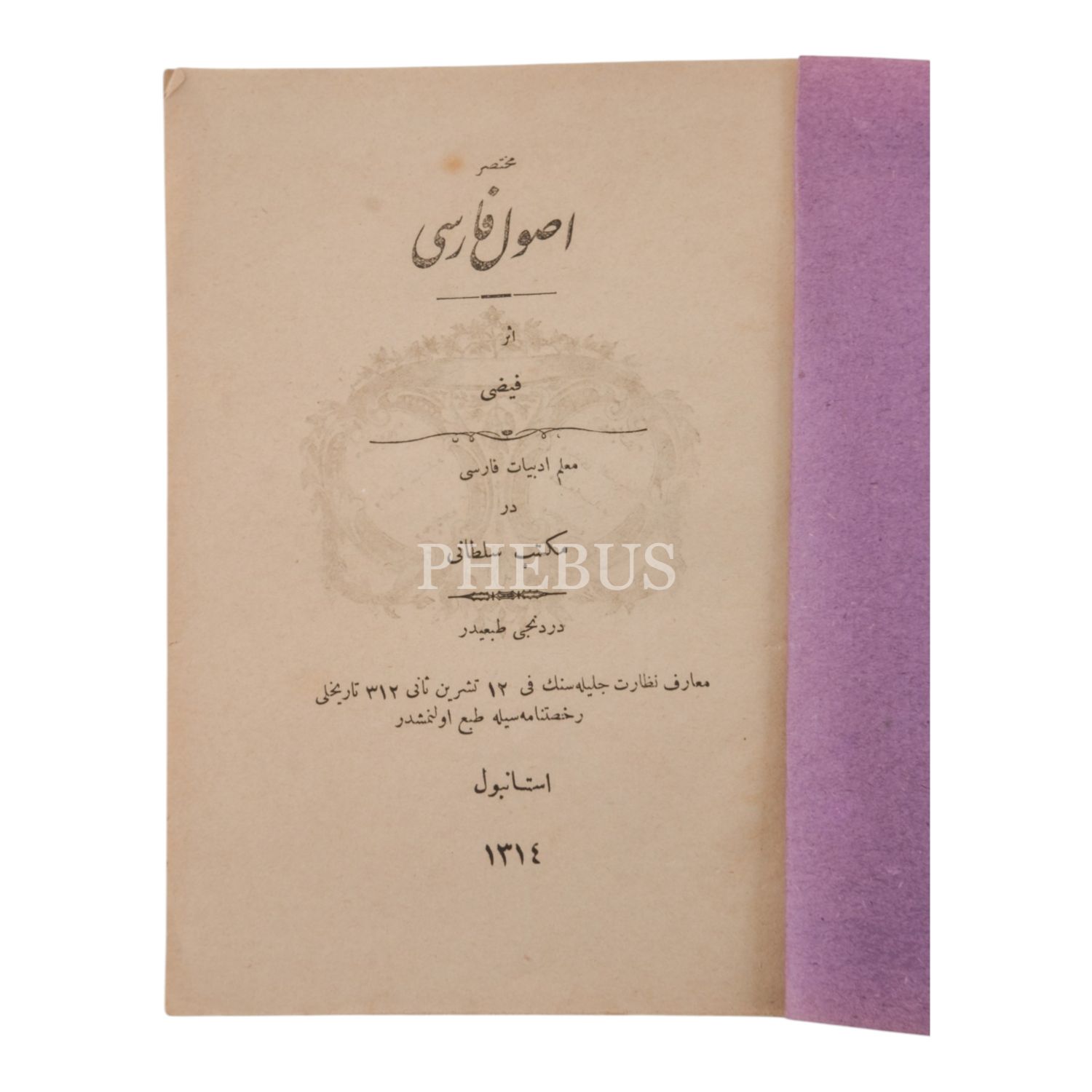 MUHTASAR USÛL-İ FÂRİSÎ, Muallim Feyzi Bey, 1314, Vezirhanı´nda 26 numaralı matbaa, 46 sayfa, 14x19 cm...