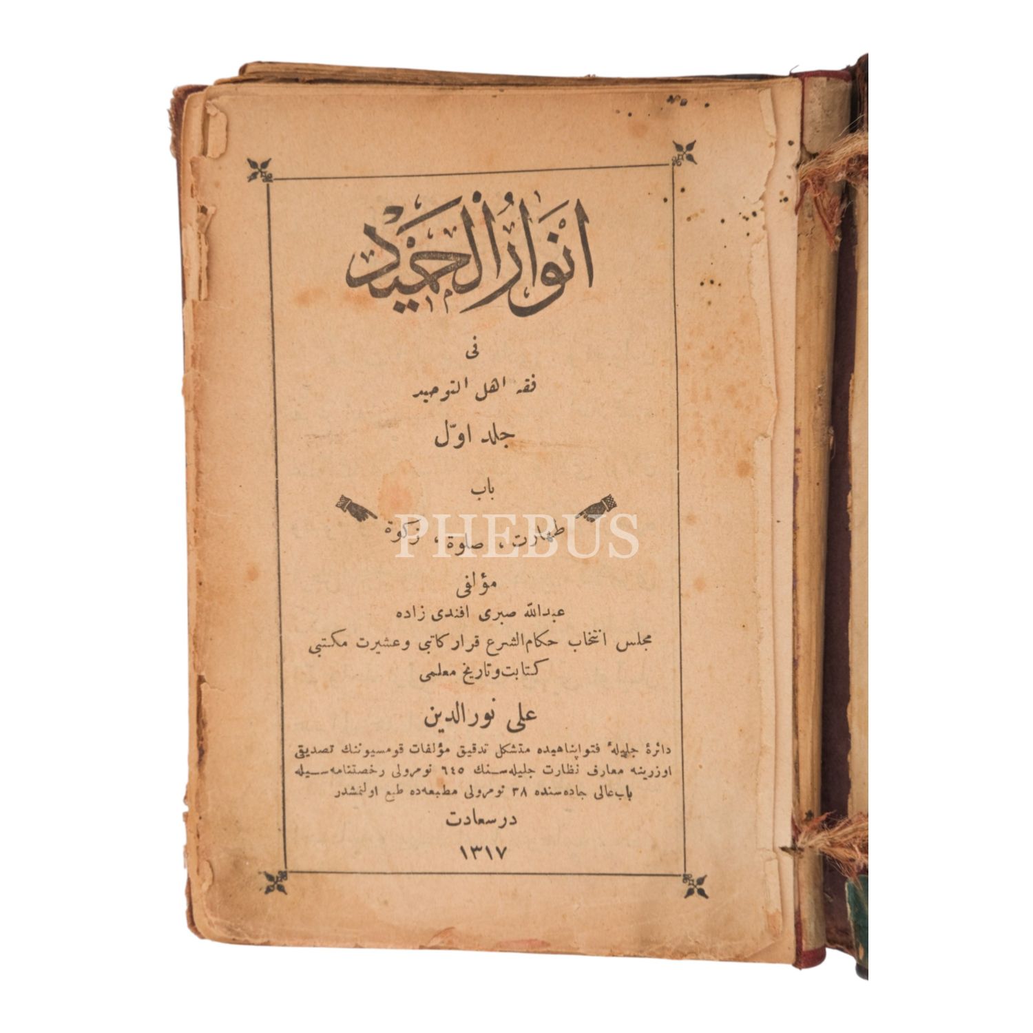 ENVÂRU´L-HAMÎD fî FIKH-I EHLİ´-TEVHÎD, Sabriefendizâde Ali Nureddin, 1317, Bâb-ı Âlî caddesi 38. numaralı matbaa, 127 sayfa, 12x16 cm...