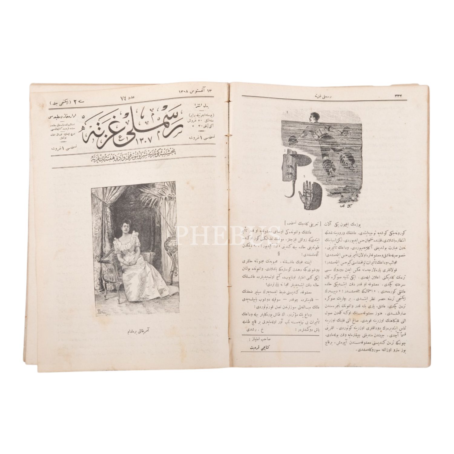 RESİMLİ GAZETE, 2. cilt, 70-103. sayılar, Temmuz 1308-Mart1309, 746 sayfa, İdarehane Matbaası, 20x27 cm...