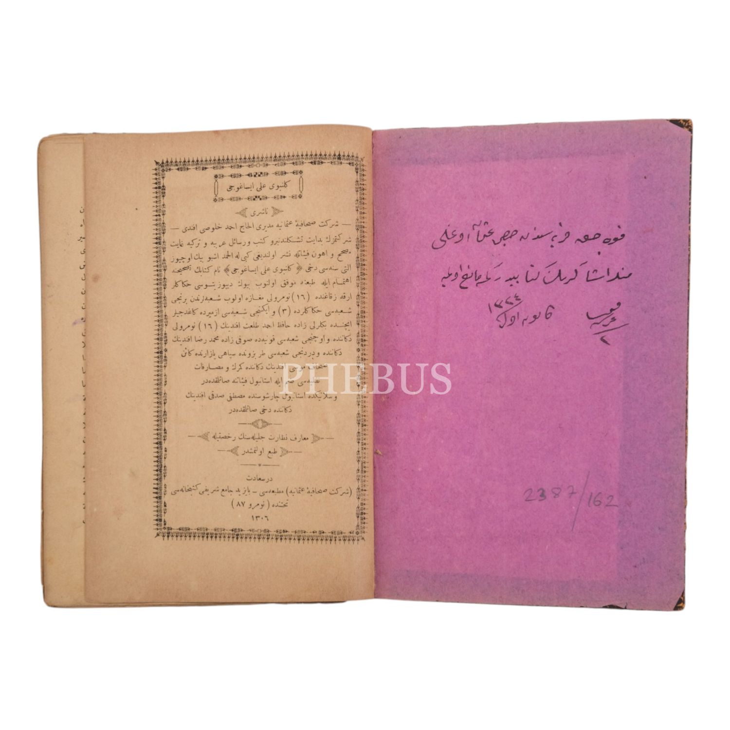 GELENBEVÎ alâ ÎSÂGÛCÎ, İsmail Gelenbevî, 1306, Şirket-i Sahâfiye-i Osmâniye Matbaası, 72 sayfa, 16x23 cm...