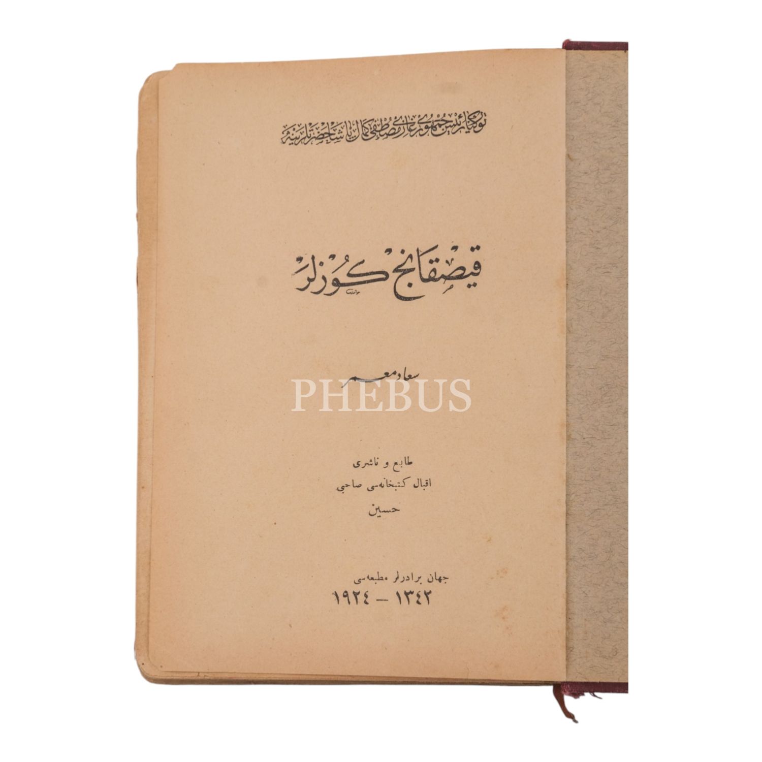 KISKANÇ GÖZLER, Suad Muammer, 1924, Cihan Biraderler Matbaası, 254 sayfa, 14x20 cm...