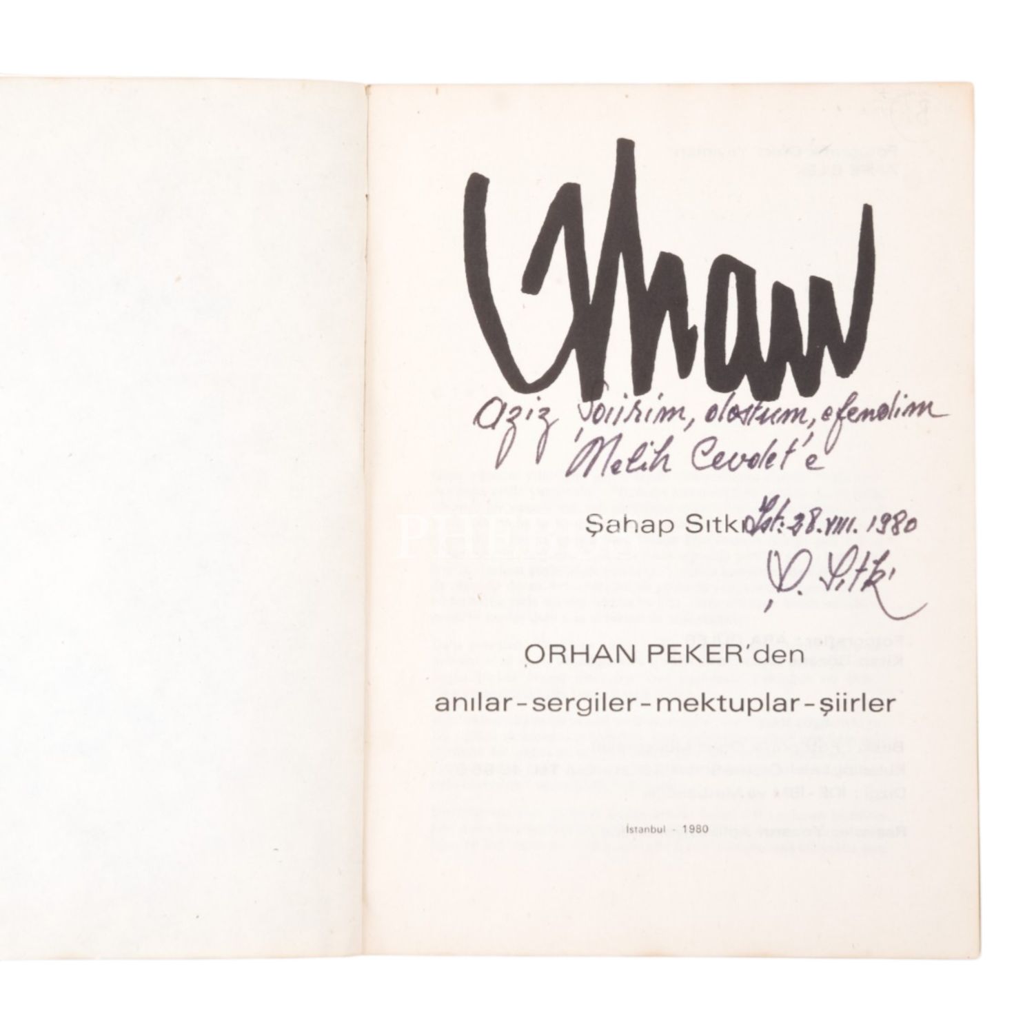 "Aziz şairim, dostum, efendim Melih Cevdet´e." ithafıyla, 28 Ağustos 1980 tarihinde imzalanmıştır. Fotoğraflar: Ara Güler