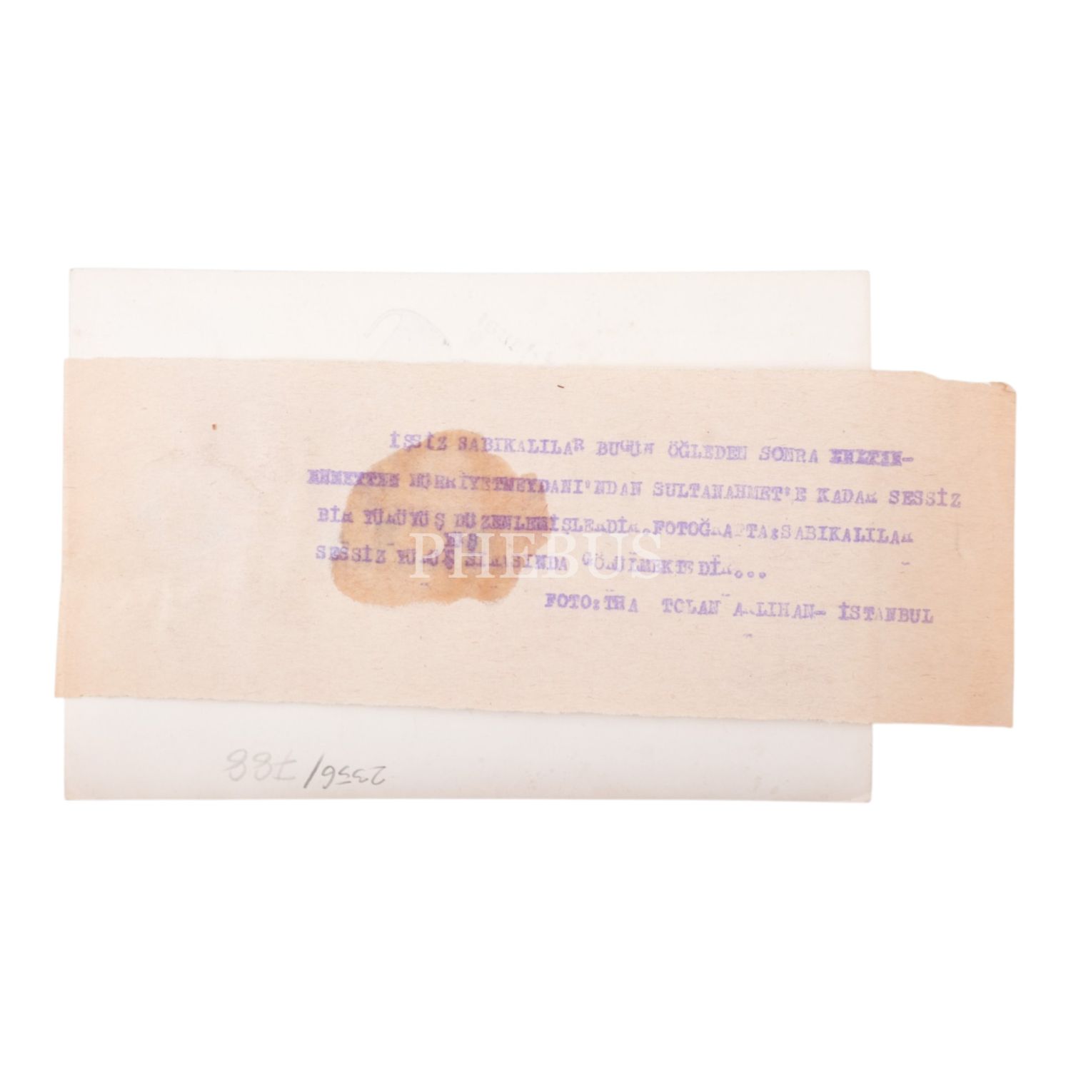 "İşsiz Sabıkalılar"ın Beyazıt Meydanı´ndan Sultanahmet Meydanı´na doğru düzenledikleri yürüyüşten bir enstantane, arka yüzü basın arşivi damgalı ve açıklama bantlı, 18x12 cm...
