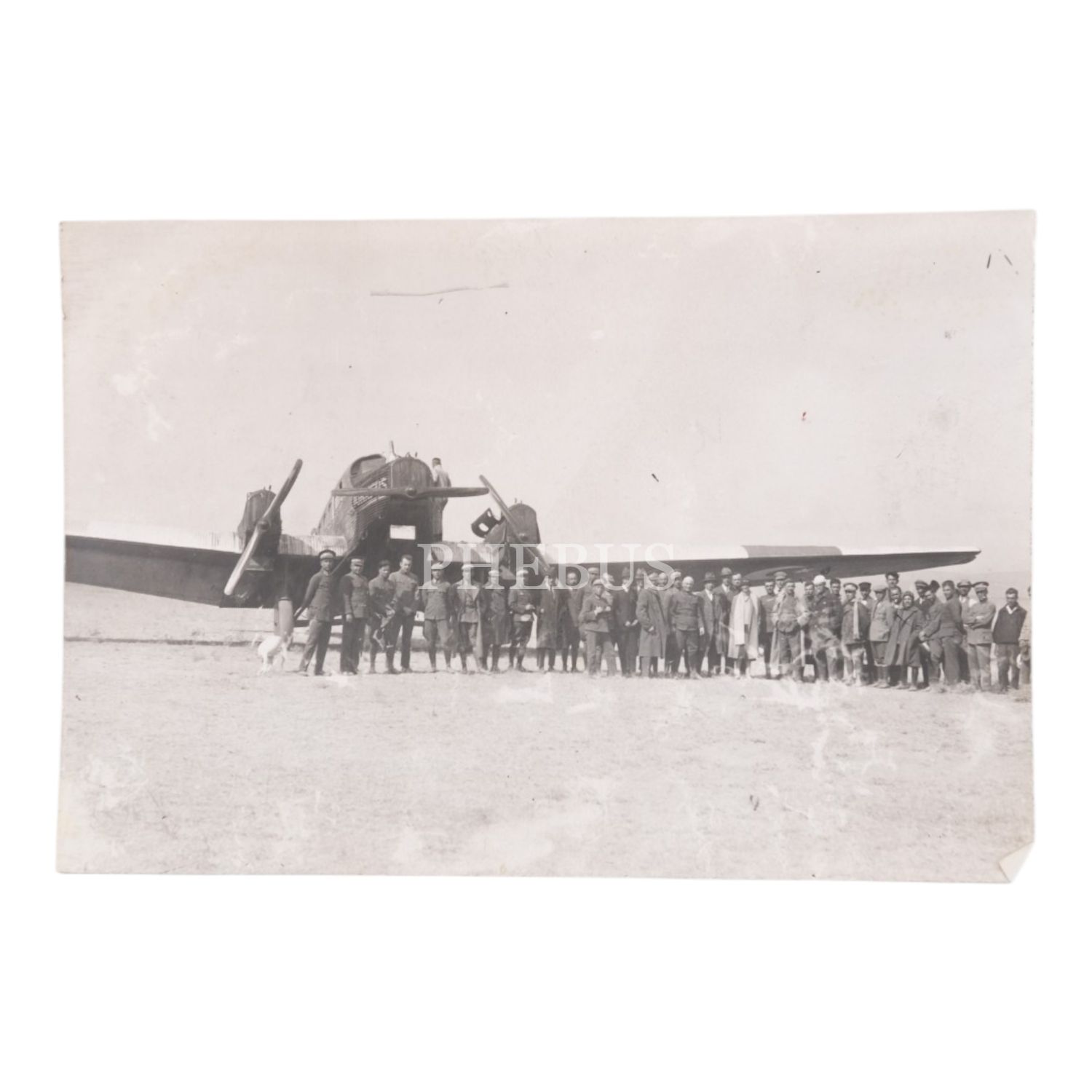 Büyük bir Türk uçağı önünde subaylar ve sivil vatandaşlar, 13x9 cm...