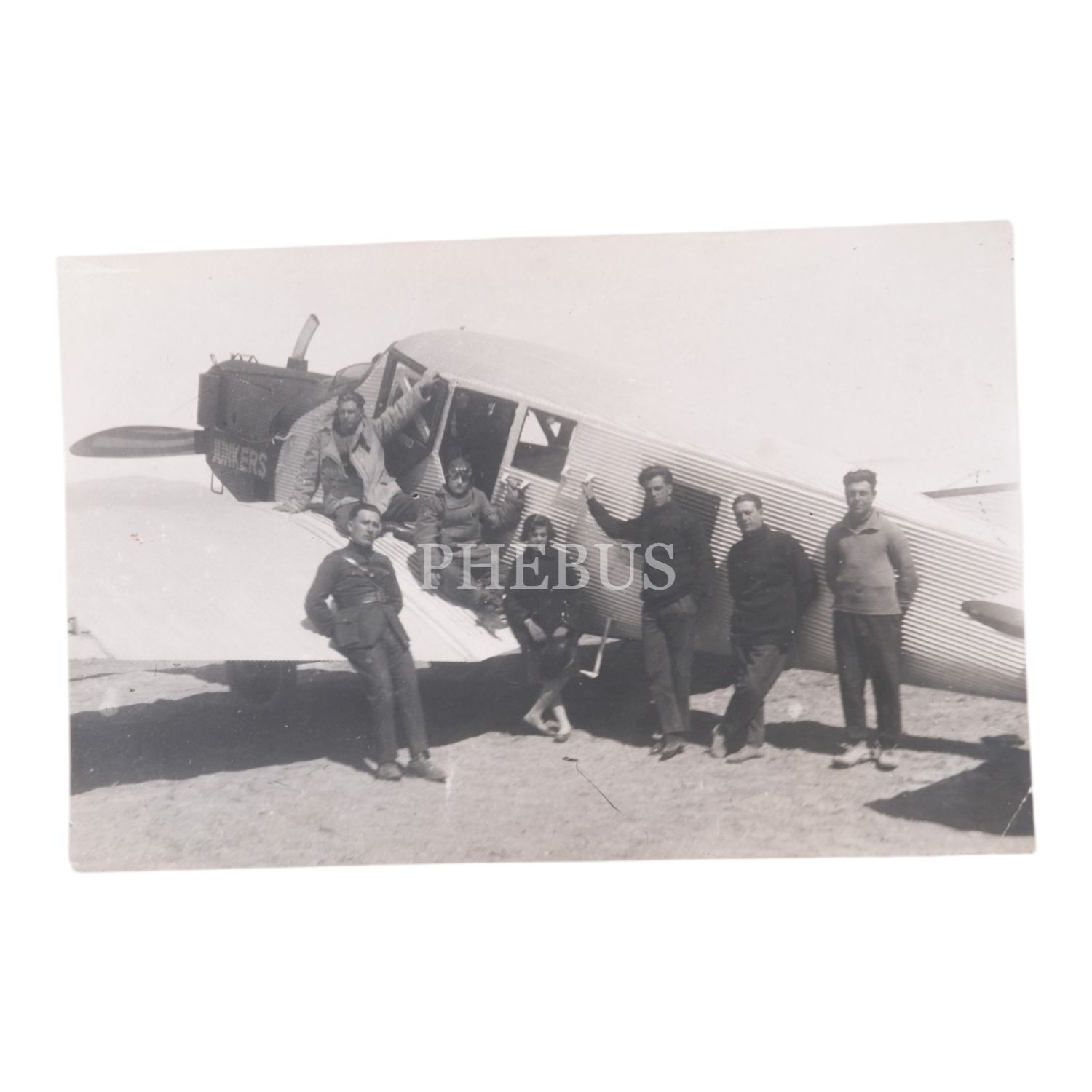 Junkers model bir yolcu uçağı önünde subaylar ve sivil vatandaşlar, 14x9 cm...