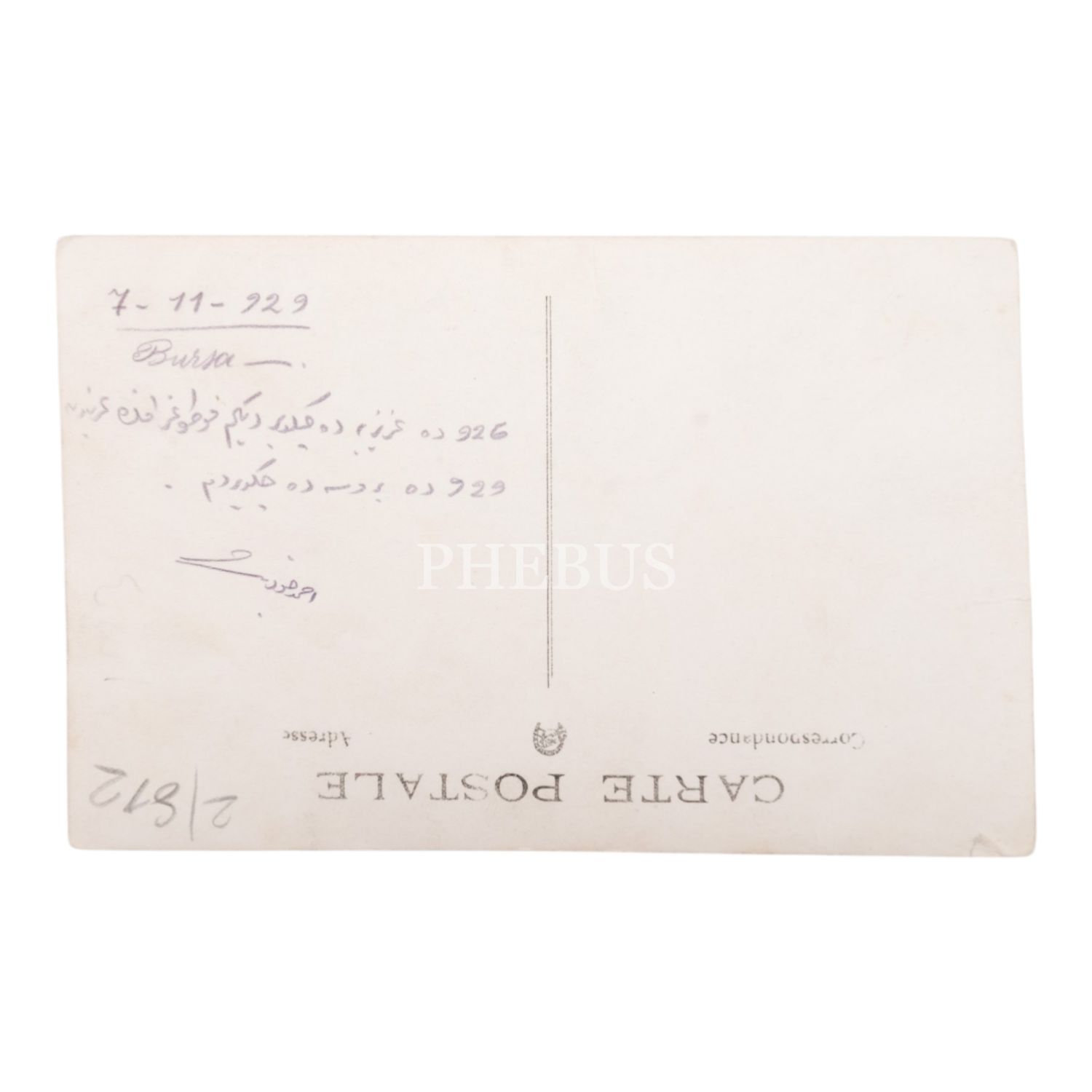 Bir beyefendinin Çanakkale Boğazı´nın resmedildiği ve uçak dekorlu bir stüdyoda çektirdiği hatıra fotoğrafı, 14x9 cm...